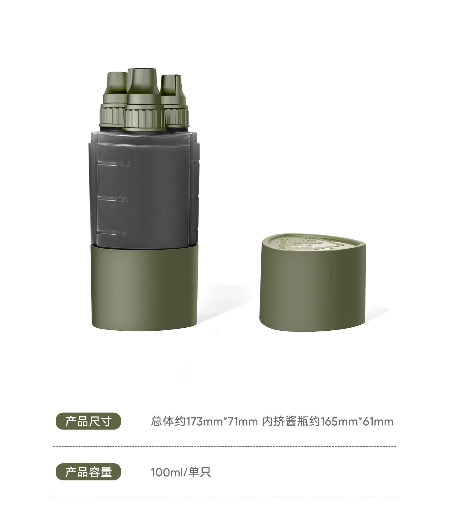 原始人户外便携式挤酱瓶套装露营调料盒露营油壶三件套烧烤油瓶 三合一挤酱瓶(黑绿色)