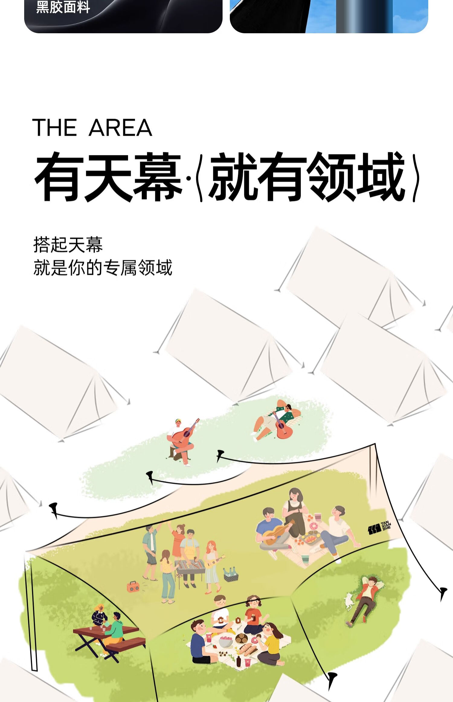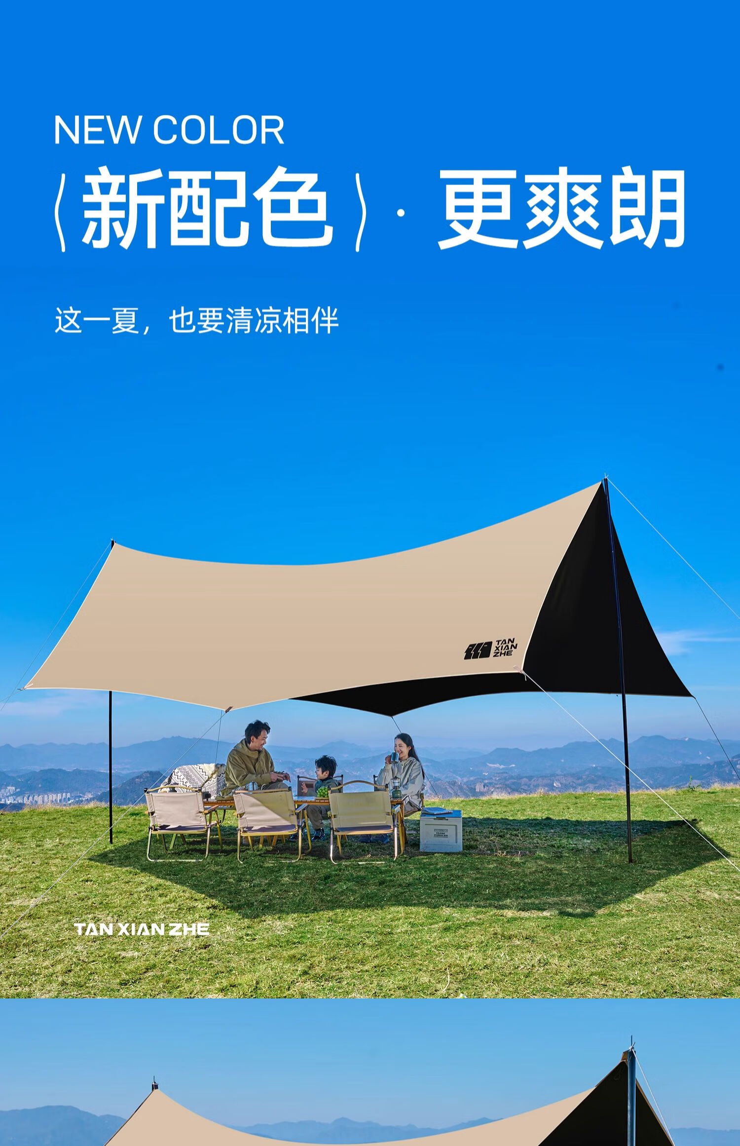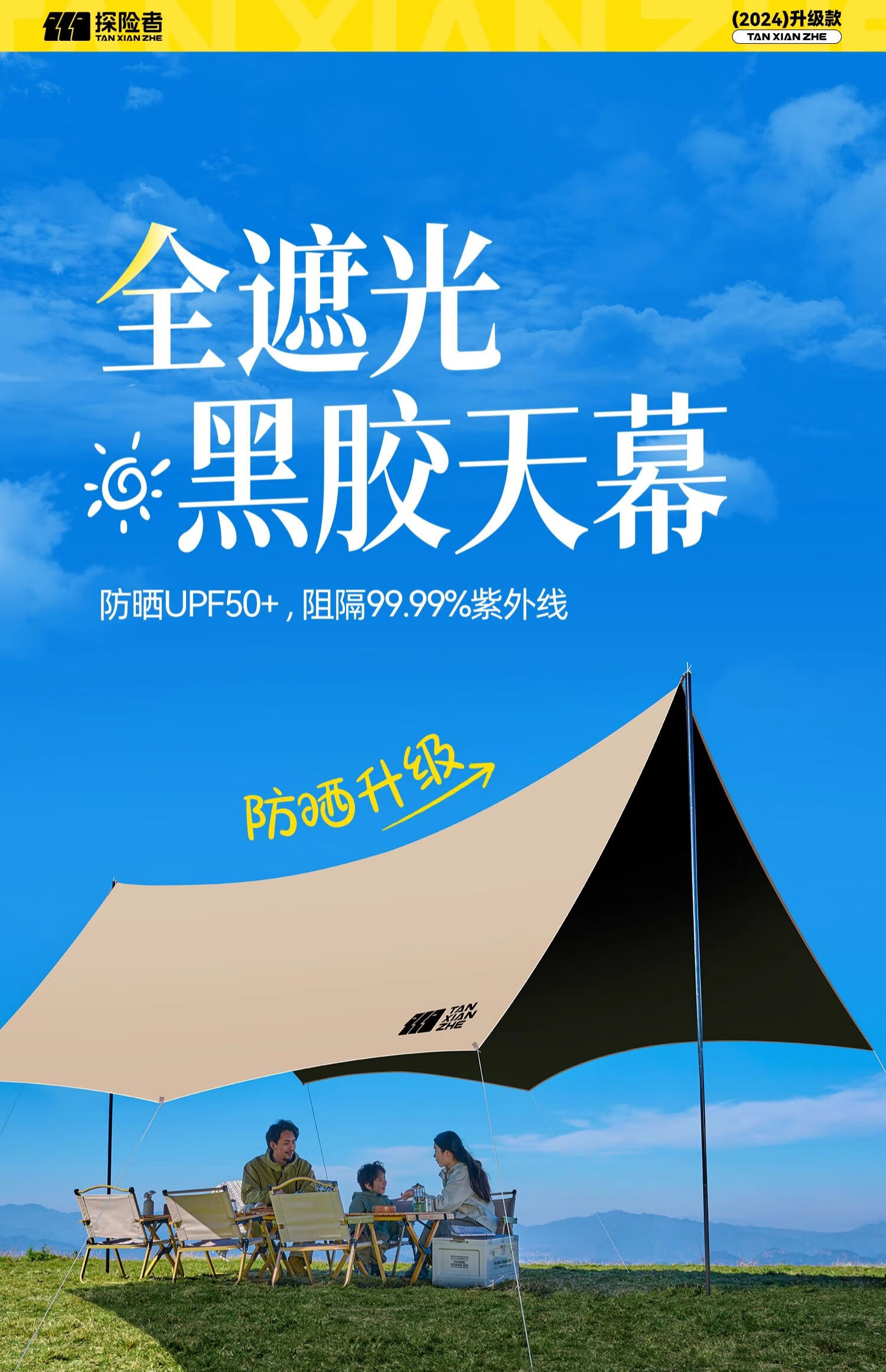 探险者天幕户外黑胶天幕遮阳公园露营天幕便捷式野餐野炊防雨防晒 象牙白黑胶丨14平-建议6-12人