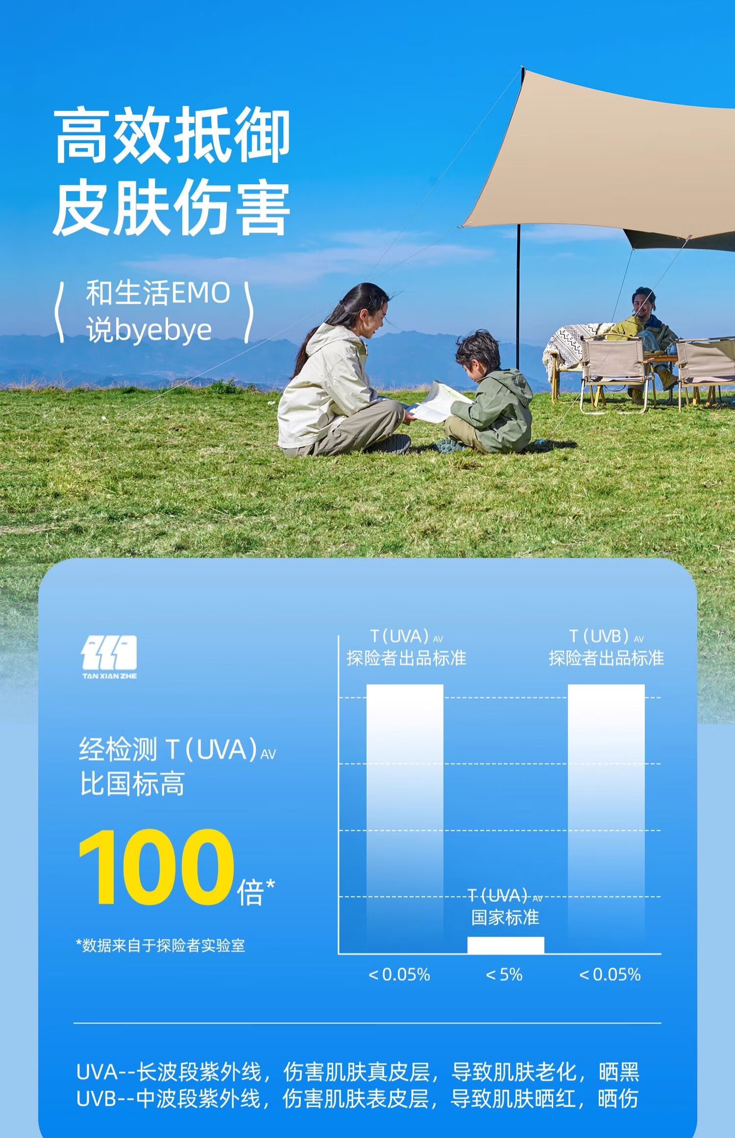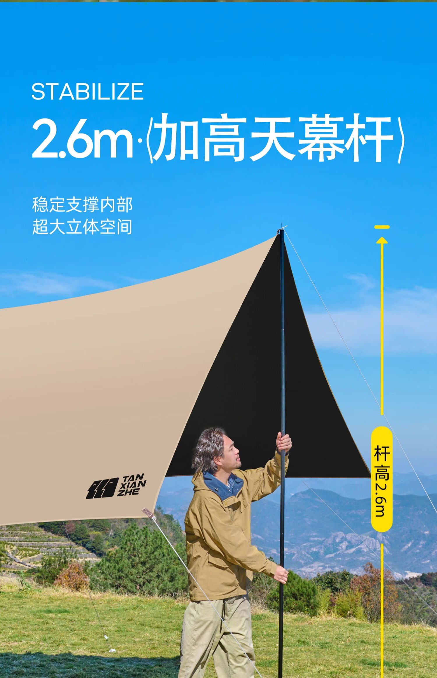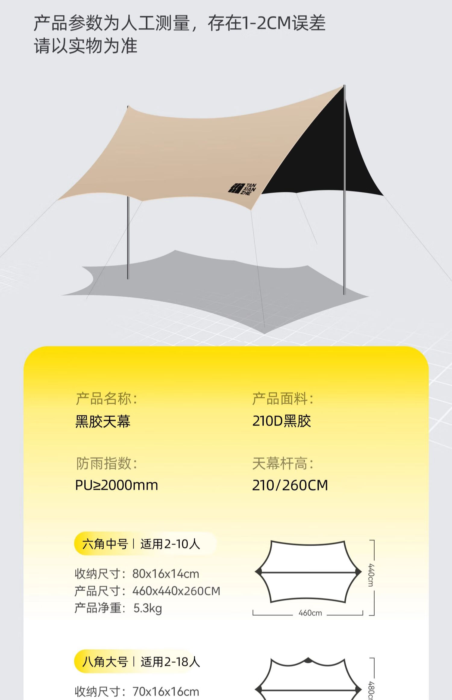 探险者天幕户外黑胶天幕遮阳公园露营天幕便捷式野餐野炊防雨防晒 象牙白黑胶丨14平-建议6-12人