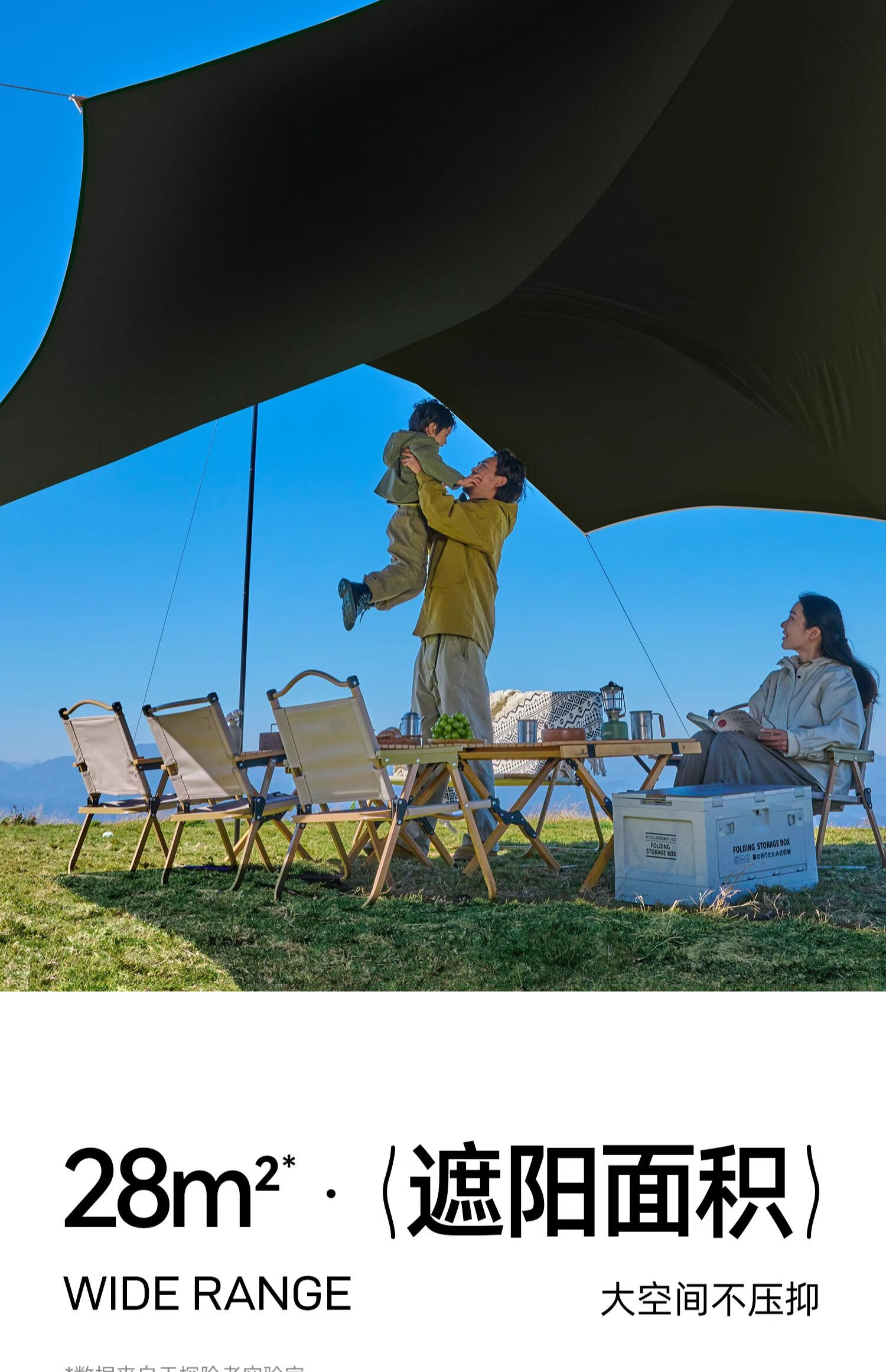 天幕到了,带出去玩整体感觉非常棒了,结实,遮光效果不错,比较抗风,第一次露营,小白也可以轻松扎起来,搭建也很方便,在下面休息也很舒服,没有很闷热的感觉。天幕更给人一种开阔自由的体验感,期待有更多美好的生活体验。