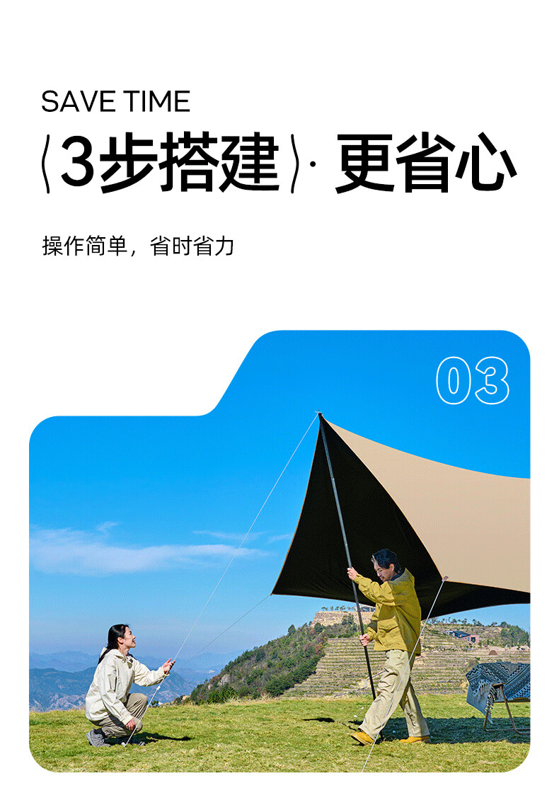 遮阳效果不错,能挡紫外线,全五星好评了!风绳和地钉的质量也完全够用,而且防晒杠杠的,大小挺宽敞,前几天天气不错就安排上了露营,玩的很开心!