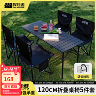 探险者(TAN XIAN ZHE)露营桌椅露营装备全套户外桌椅套装便携折叠桌折叠椅子便携野餐桌 【120CM】4-8人曜黑一桌四椅五件套-赠收纳包