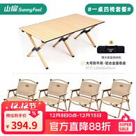 山扉山扉双面蛋卷桌子铝合金超轻户外桌椅折叠露营便携野餐装备全套 【1桌4椅】大号蛋卷桌+卡其椅*4