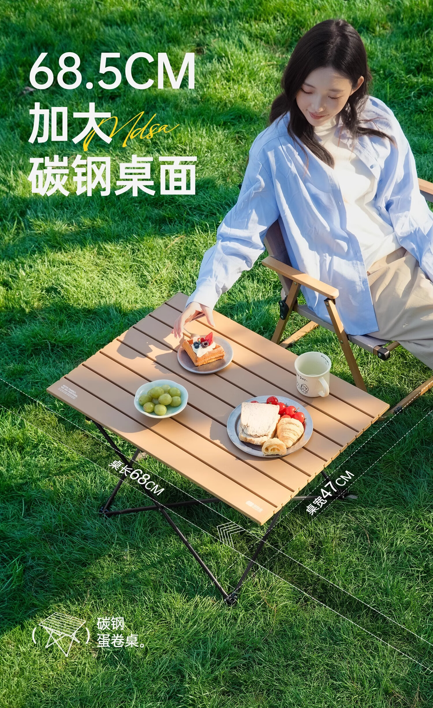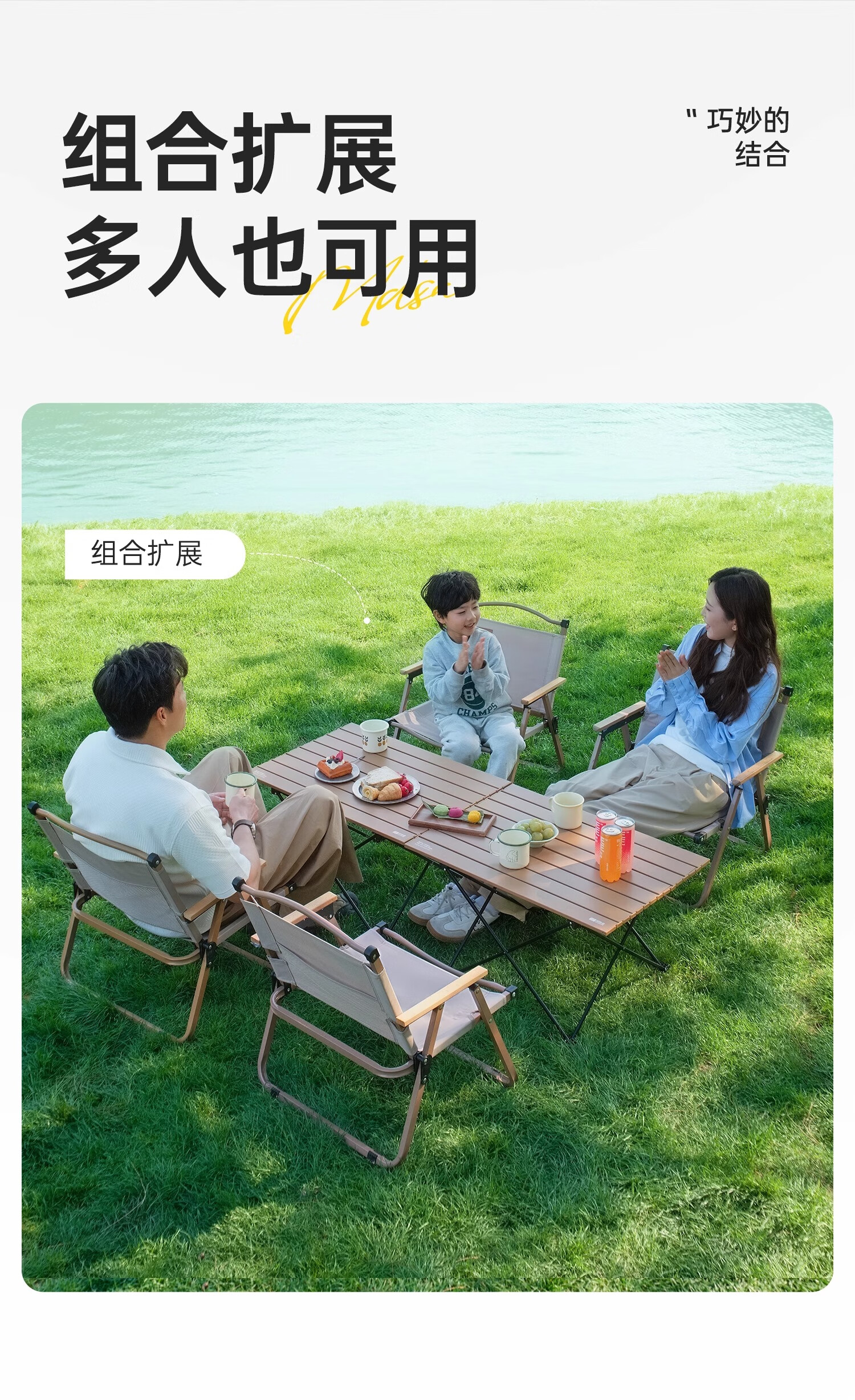 探险者户外桌椅蛋卷桌露营折叠桌椅全套便携月亮椅野餐一桌四椅户外套装 1-3人特惠款--90CM胡桃蛋卷桌(送收纳包)