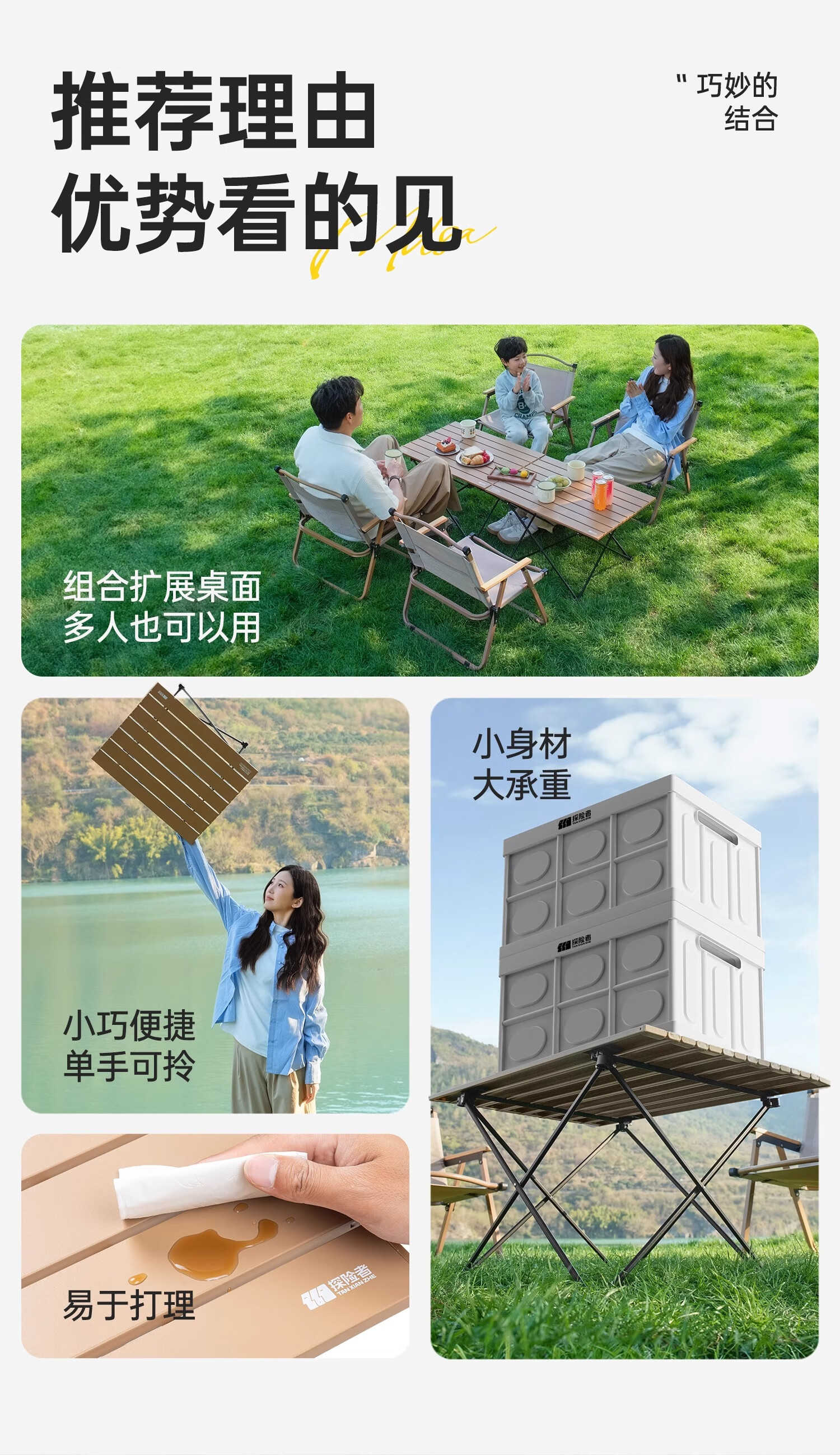 Guide Series户外铝合金折叠桌露营桌便携升降沙滩烧烤桌加宽桌自驾游车载桌 新 加宽金属 木纹黑色