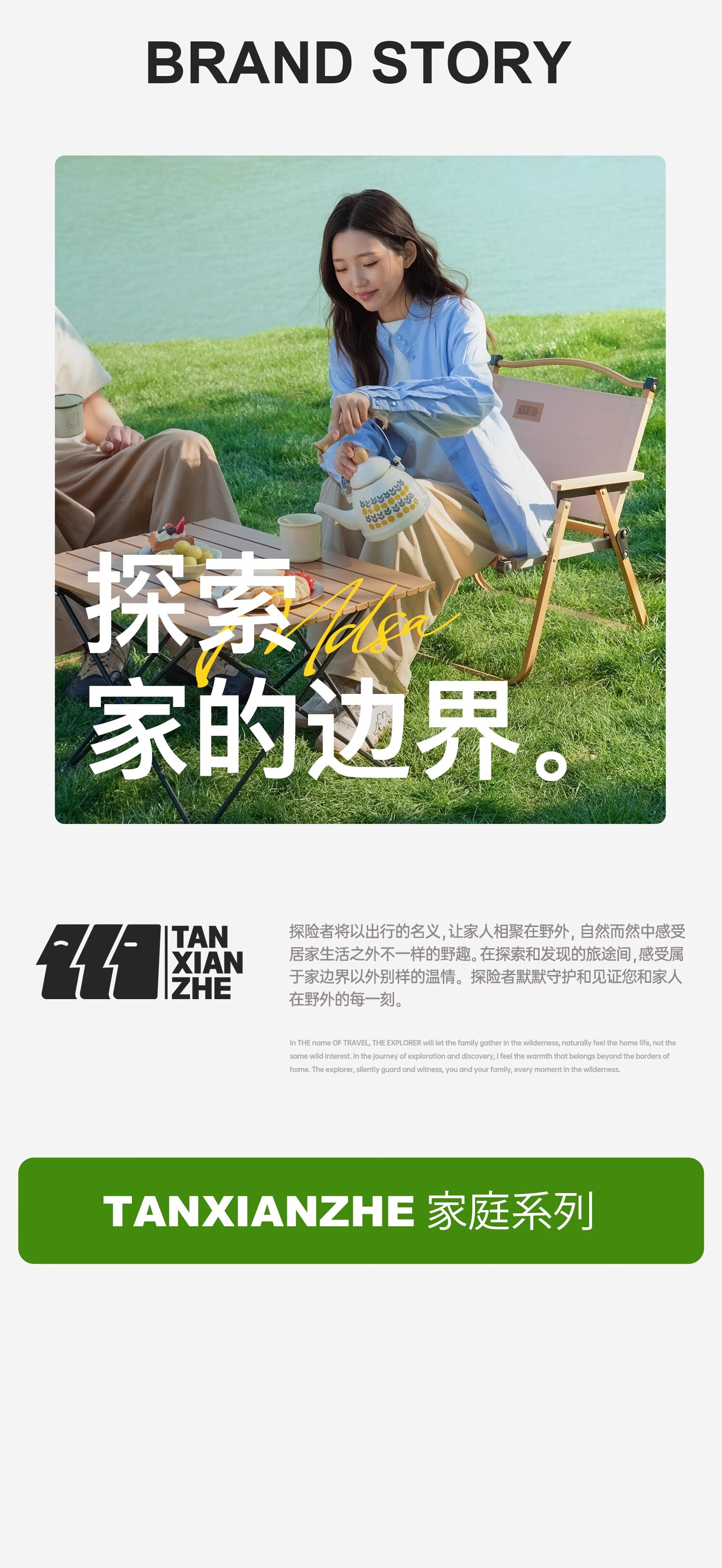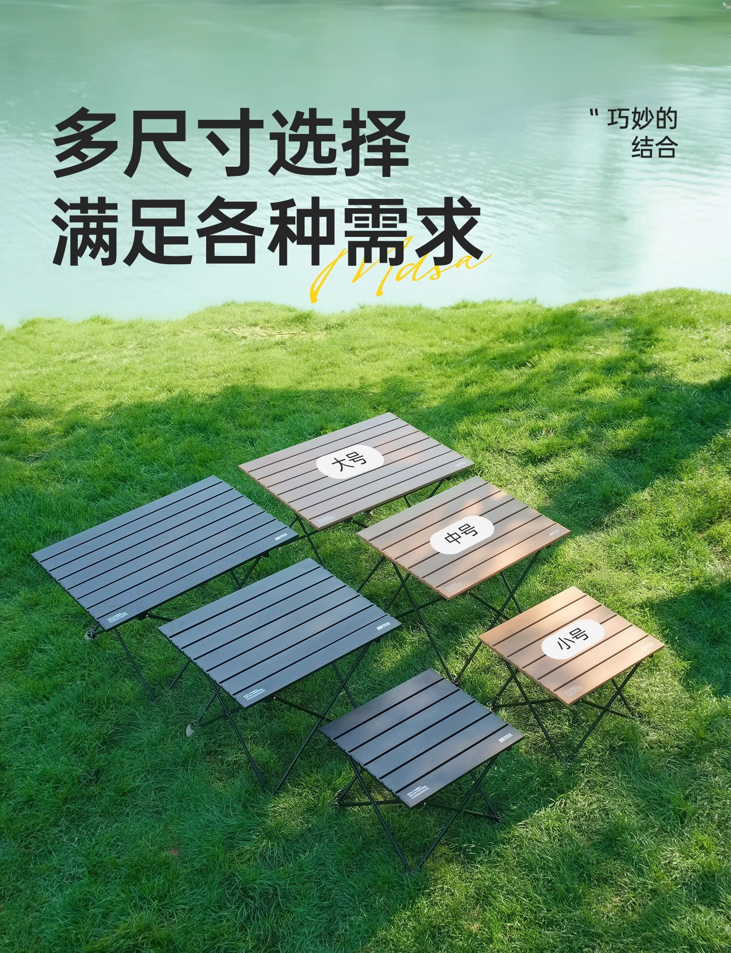 探险者(TAN XIAN ZHE)户外折叠桌子便携式铝合金露营野餐蛋卷桌野外装备 黑色大号+米色克米特椅*1