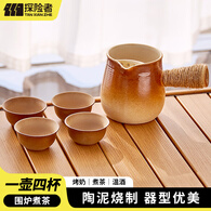 探险者围炉煮茶壶套装罐罐壶奶茶壶侧把壶陶制煮茶罐一壶四杯烤奶茶器具 【一壶四杯】陶制罐罐壶+圆杯4只