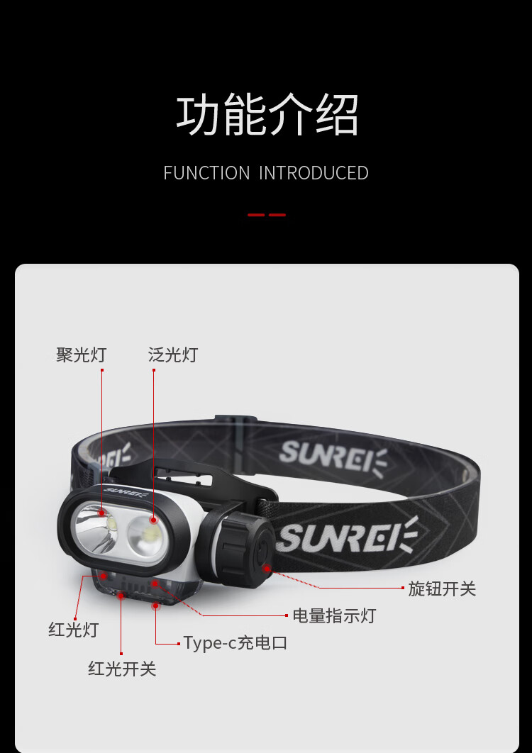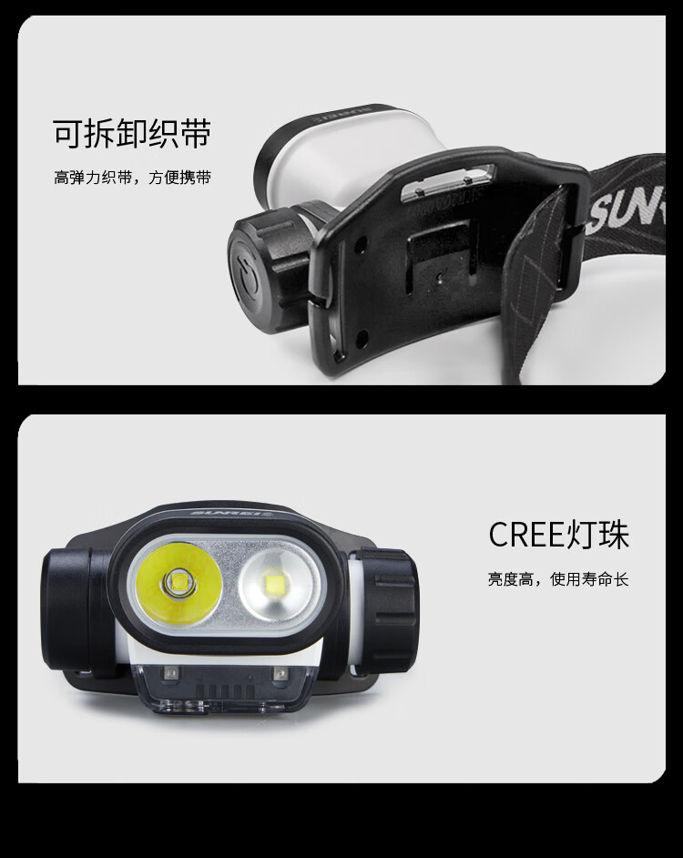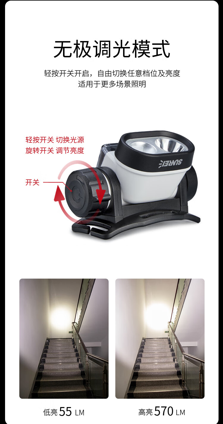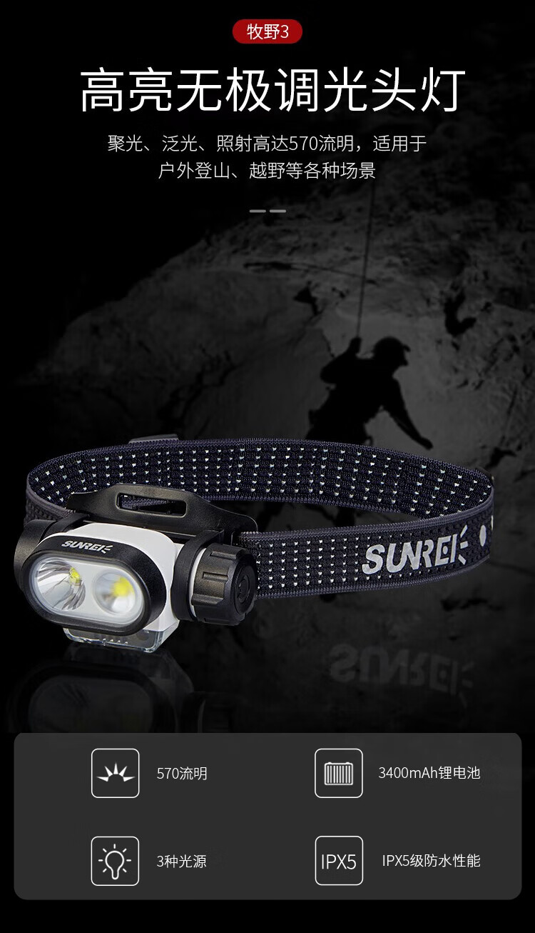 山力士牧野3高亮感应无极调光防水头灯强光超亮越野户外露营户外头灯 感应款