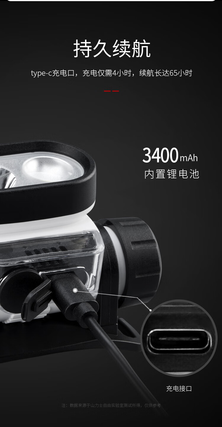 山力士山力士星光感应头灯LED夜钓强光露营灯充电超亮钓鱼头戴式照明灯 锂电池1块(通用380和480)