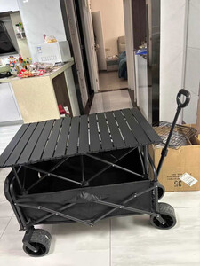 溥畔露营车坦克轮户外露营小推车折叠户外摆摊车快递营地车拉车带桌板 便携款-黑色