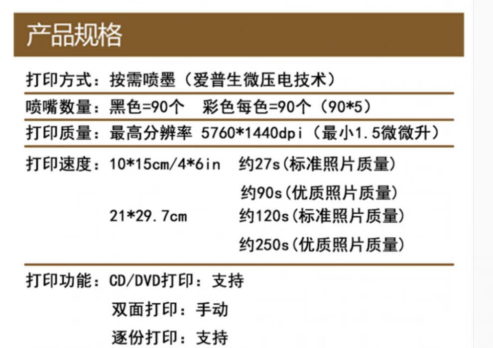 爱普生打印机真不错,单位用来打印桌卡(硬卡纸),打印很方便。这是连供墨盒,后期加墨也方便。我是特价时候买的,价格实惠,性价比高。