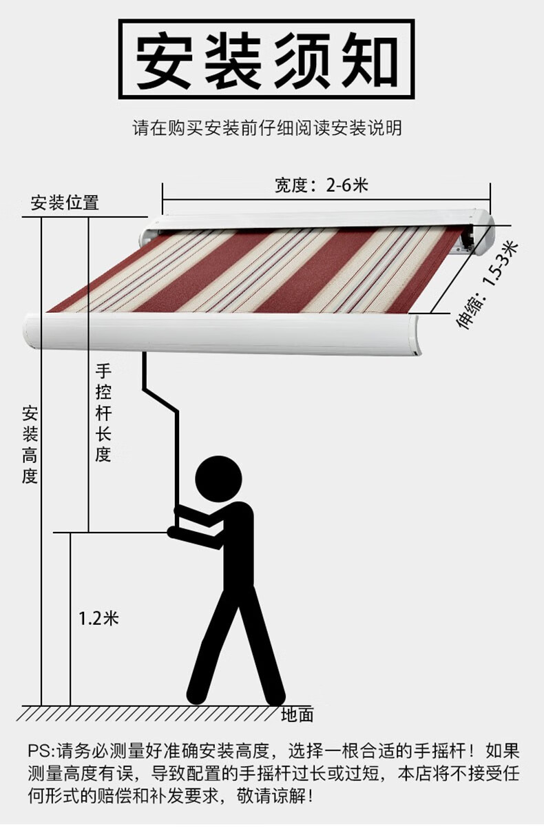 麦克雷可电动遮阳棚折叠伸缩式铝合金庭院窗台防晒挡雨雨棚长门头 长3米*伸缩1.5米包安装(裸棚) (价格为裸棚)