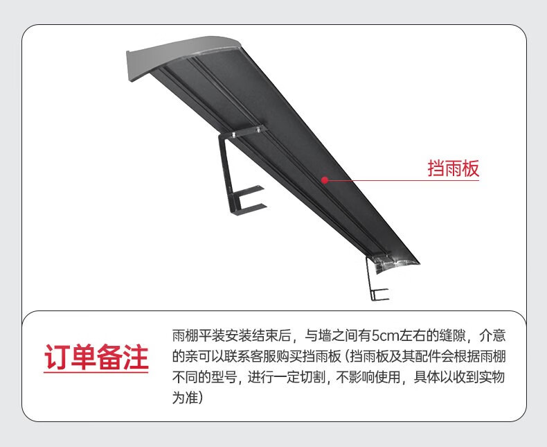 这款雨棚质量很好,布料厚实耐用,安装也简单方便。卖家服务态度非常好,耐心解答我的问题。发货速度很快,物流也很给力。总体来说非常满意!