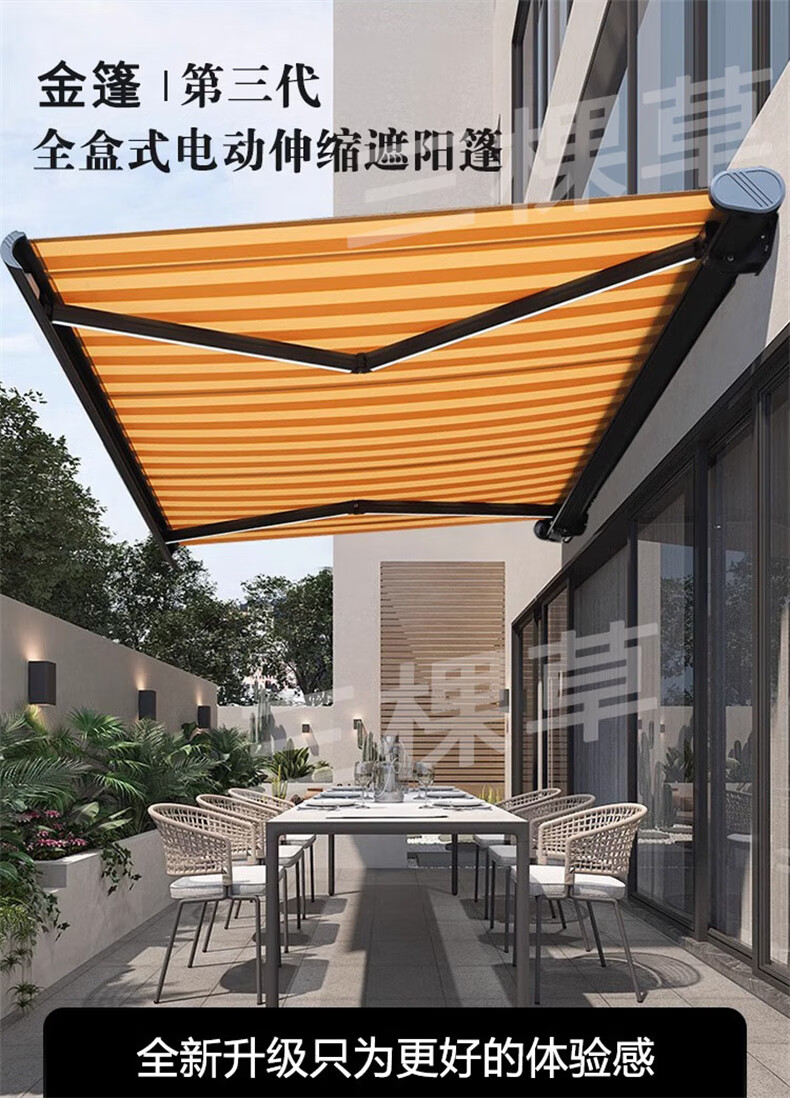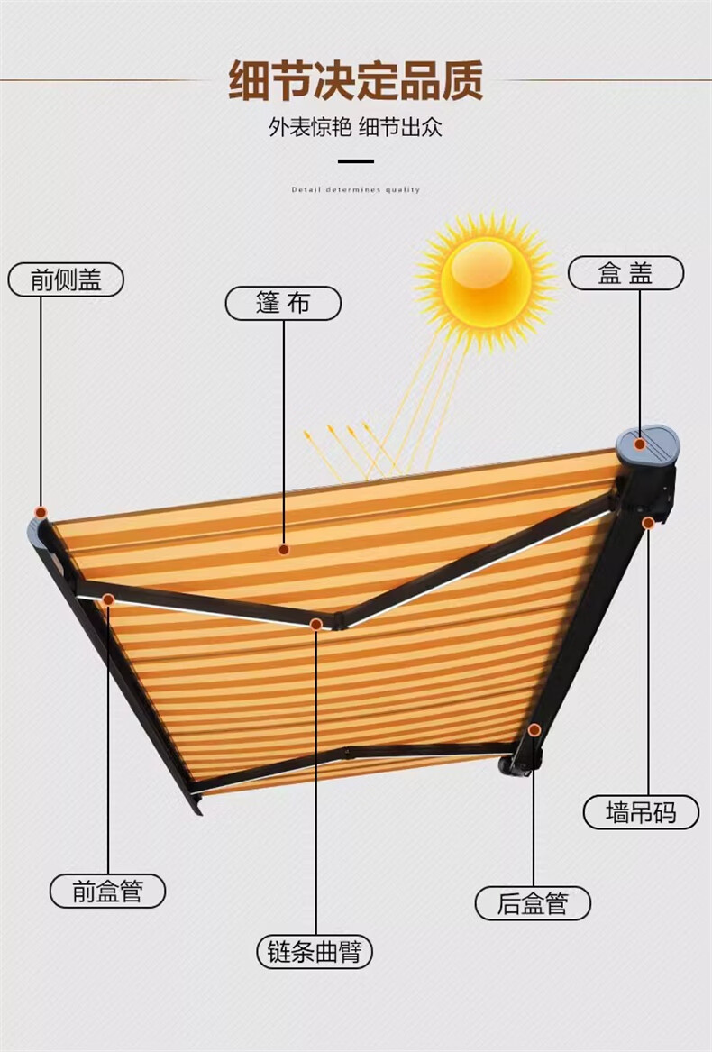 金篷豪华全盒伸缩遮阳篷自动铝合金户外电动遮阳棚露台庭院别墅遮阳蓬 包安装-全盒靠墙2米*伸缩1.5米