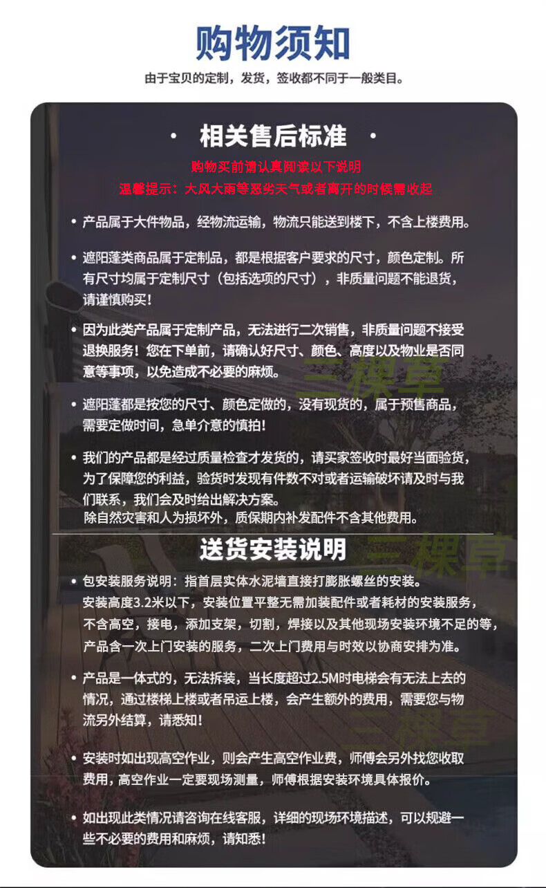 遮阳棚已经装好啦,没让我失望,质量没得说特别好,面料质感非常好,一分钱一分货,非常满意的一次购物,安装师傅特别专业,值得推荐