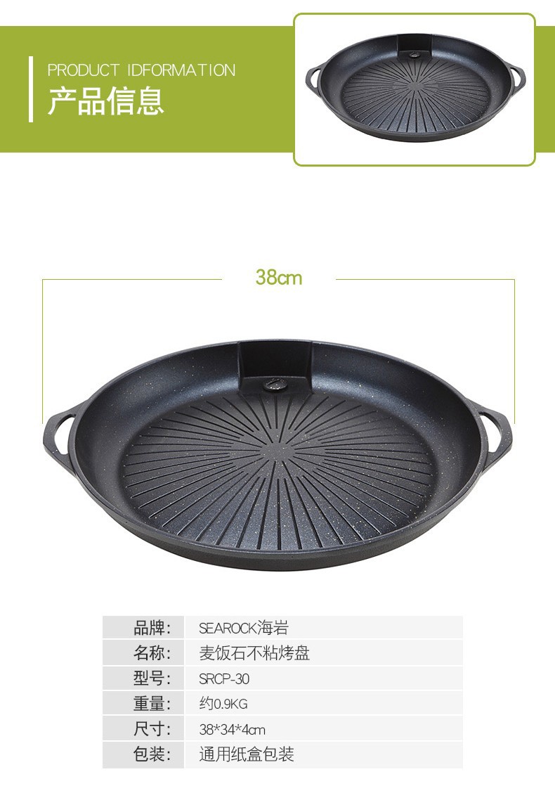 SEAROCK 韩国烤盘韩式烤盘不粘锅烤肉锅圆形烤肉盘厚款圆形烤盘 麦饭石长烤盘CP-22