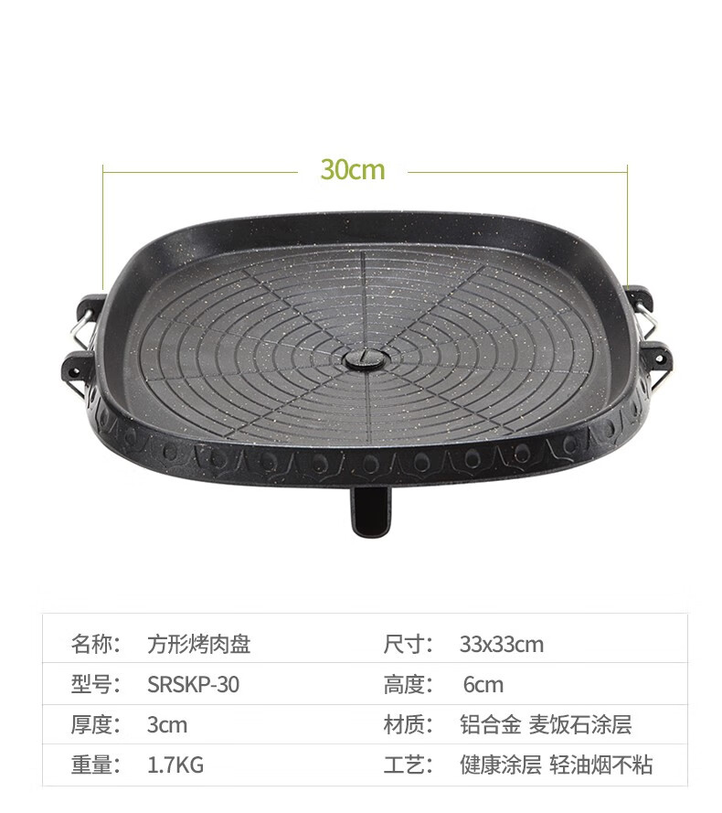 SEAROCK 烤盘卡式炉烤盘麦饭石便携烤肉盘户外野炊烤牛排烤不沾烤盘家用 烤盘GP-30(夹子刷子)