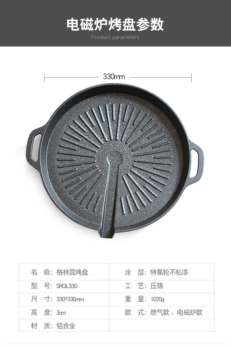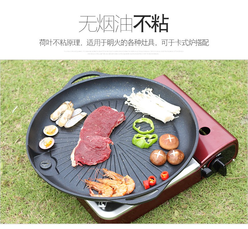 脉鲜烧烤盘韩式烤肉烤鱼锅卡式炉麦饭石不粘锅卡磁炉烤盘卡斯炉铁板烧
