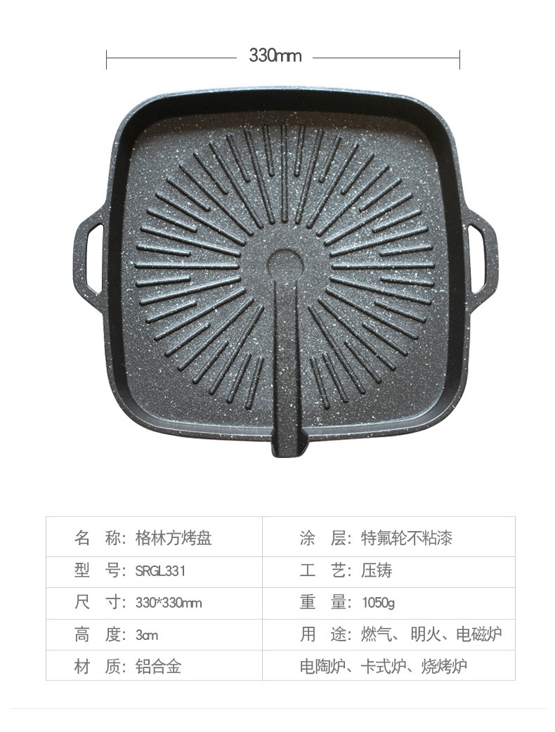 步林(BULin)麦饭石不粘煎烤盘户外便携复合底卡式炉烤肉盘电磁炉明火通用 步林G1烤盘