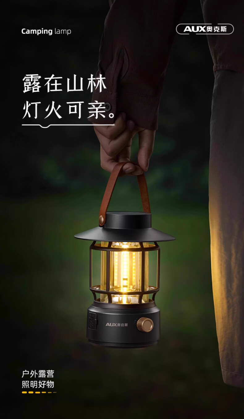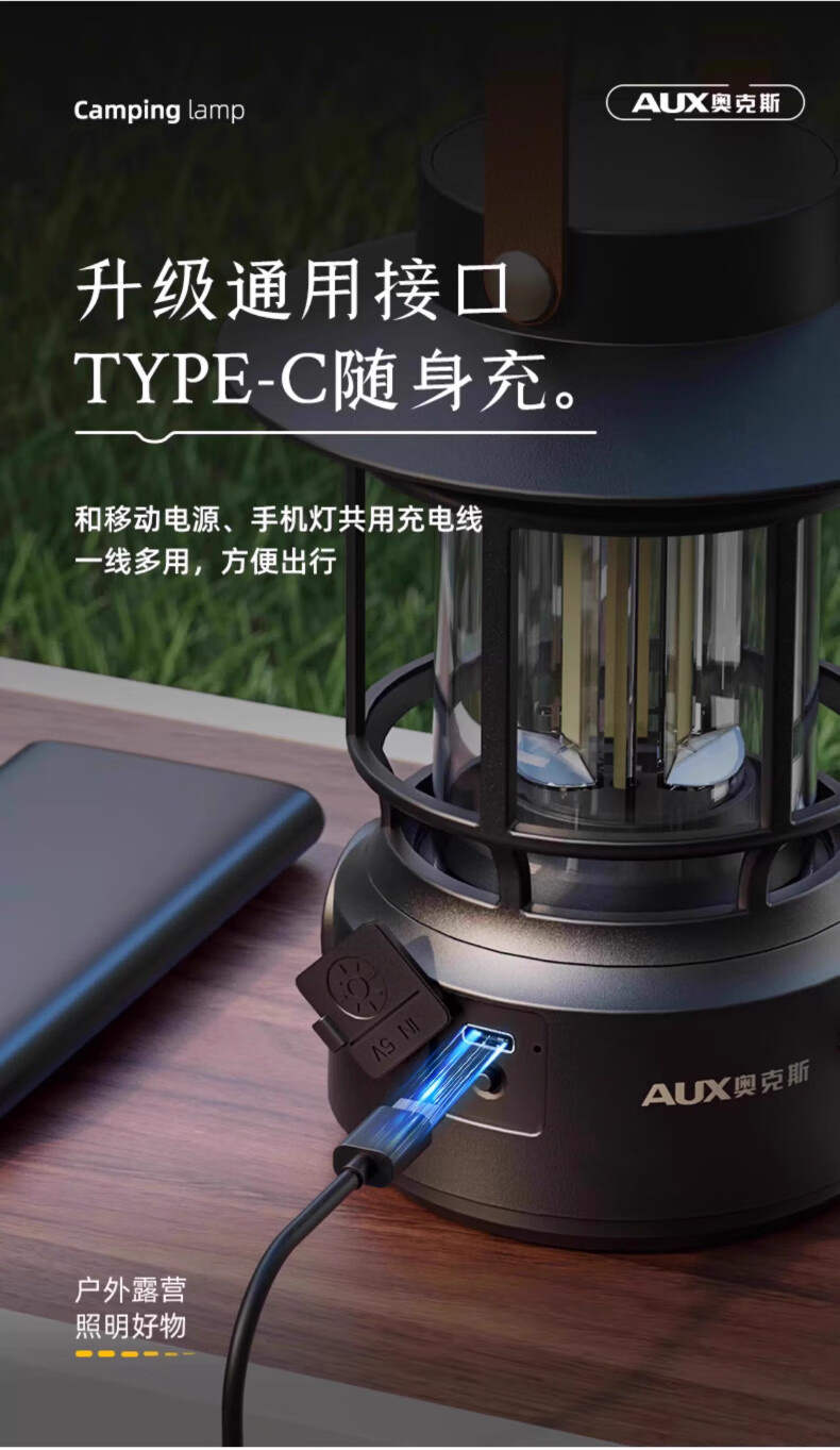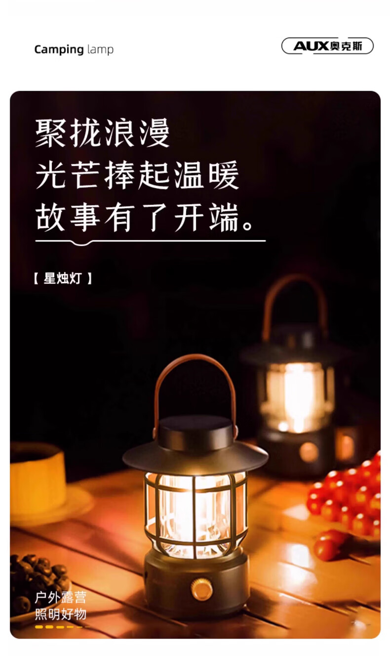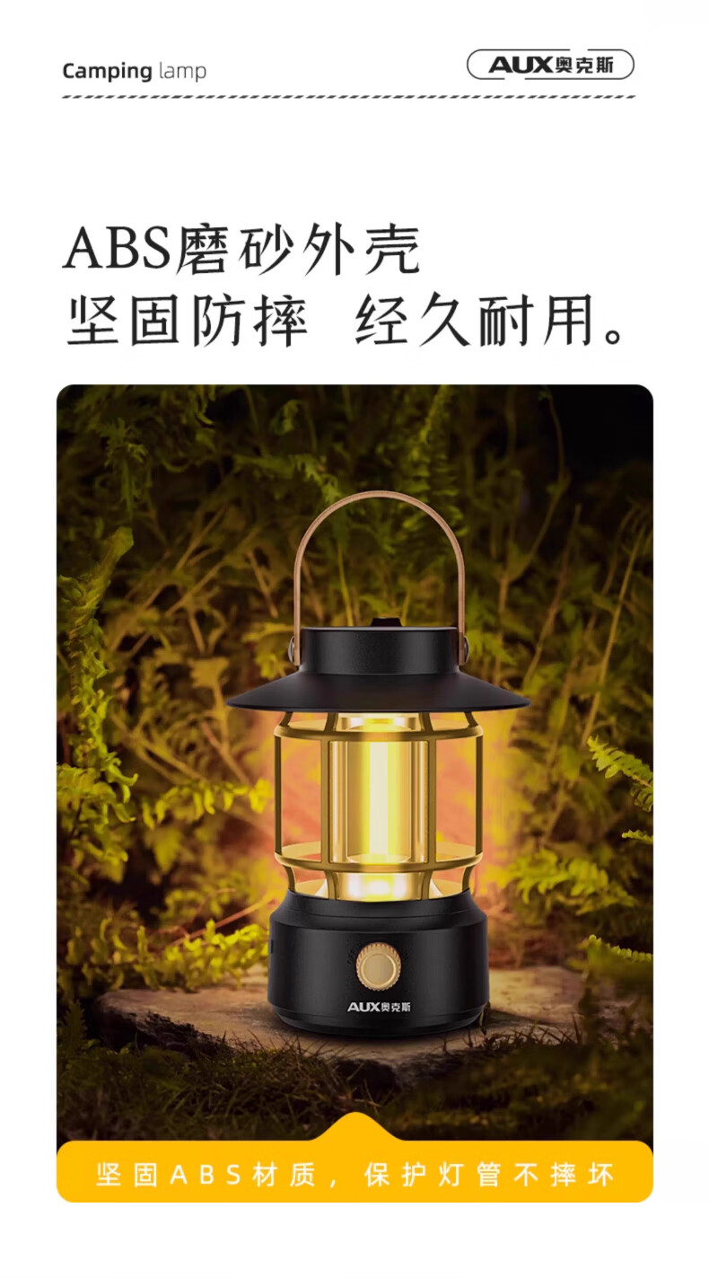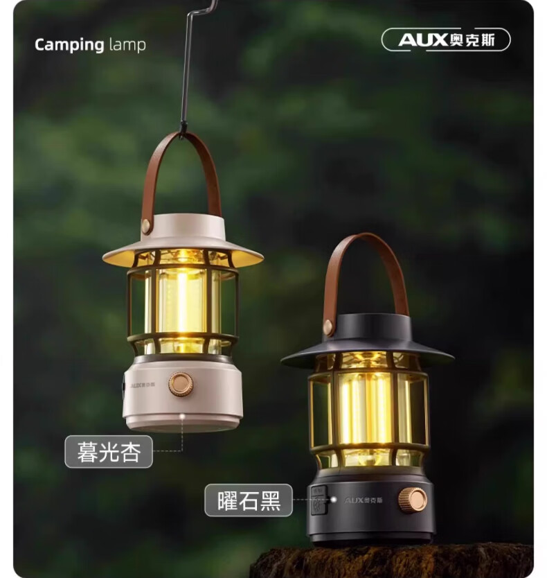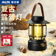 奥克斯(AUX)户外长续航圣诞跨年节日氛围灯露营灯野营太阳能充电防水手提灯 耀石黑太阳能款+双光+耐摔防水
