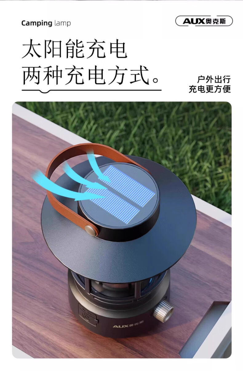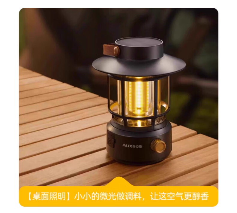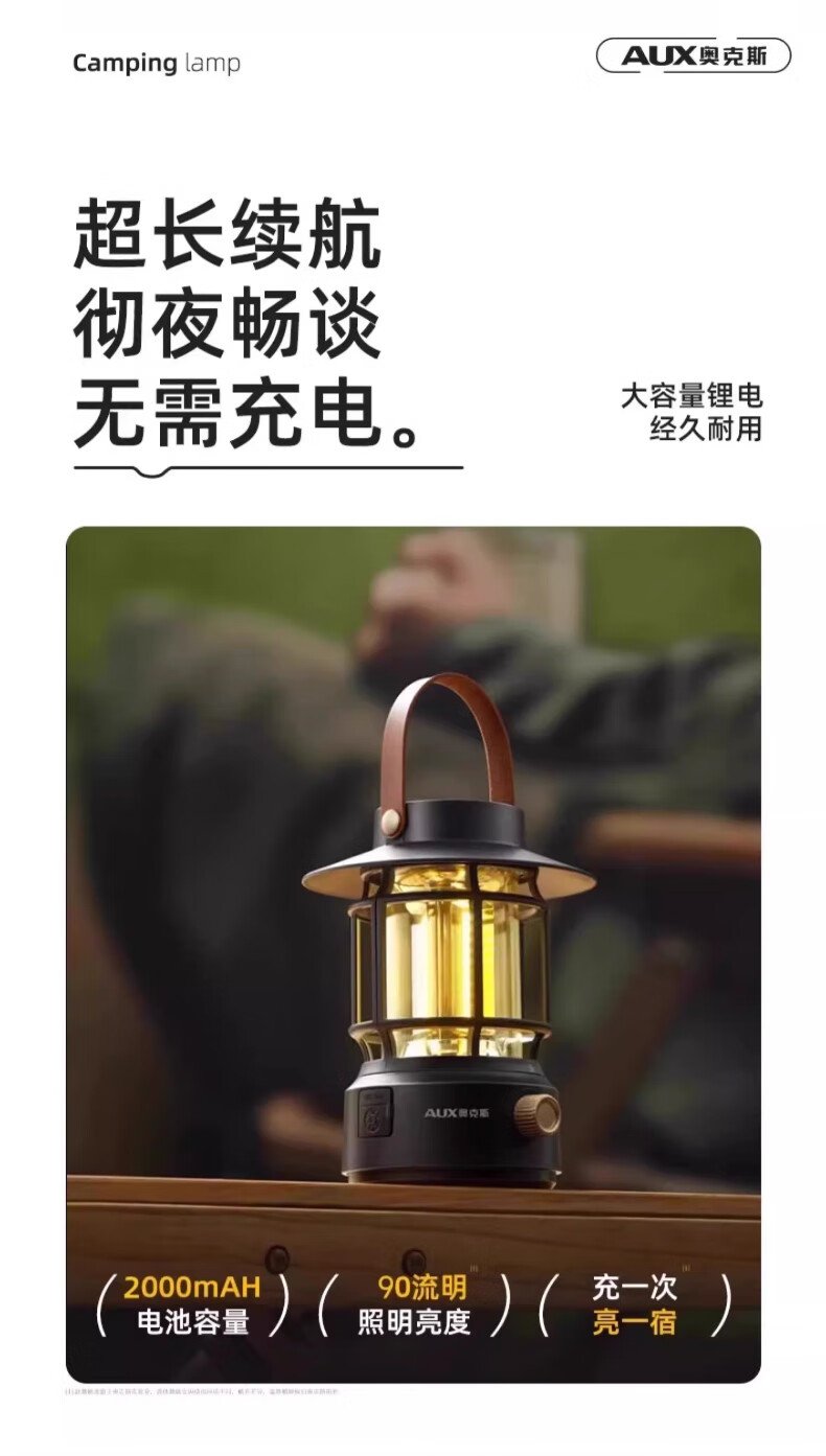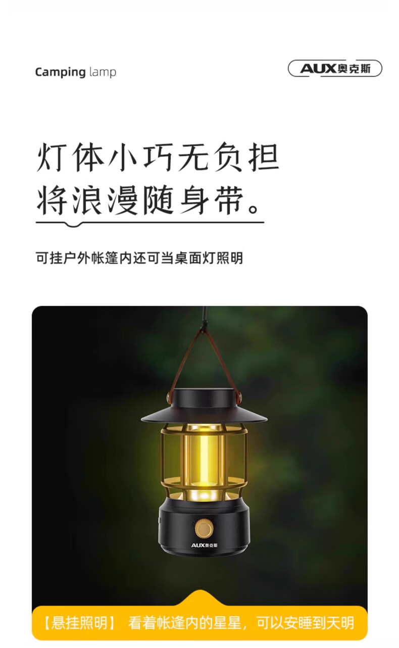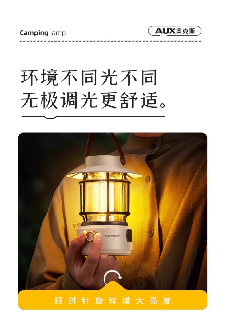 奥克斯(AUX)太阳能露营灯户外充电氛围灯野营超长续航复古超亮马灯无极调光 【月牙白】2000毫安+无极调光