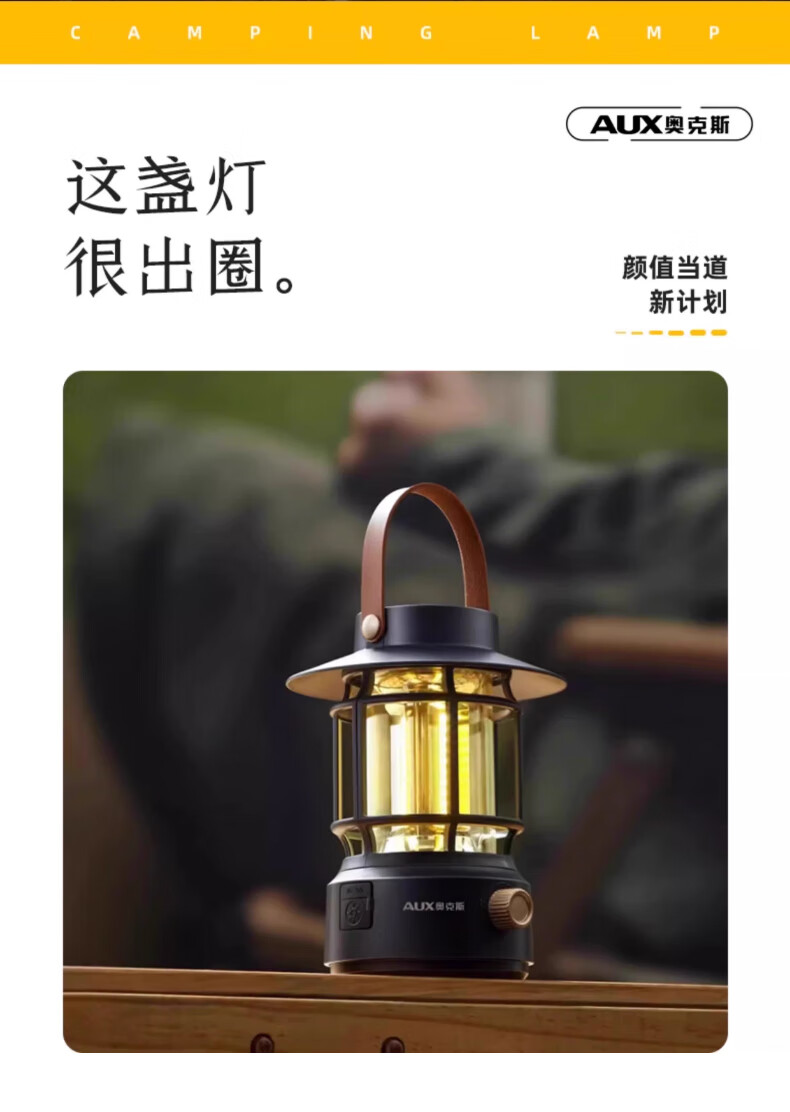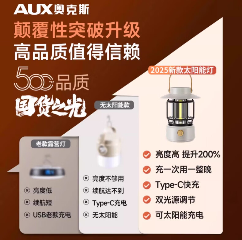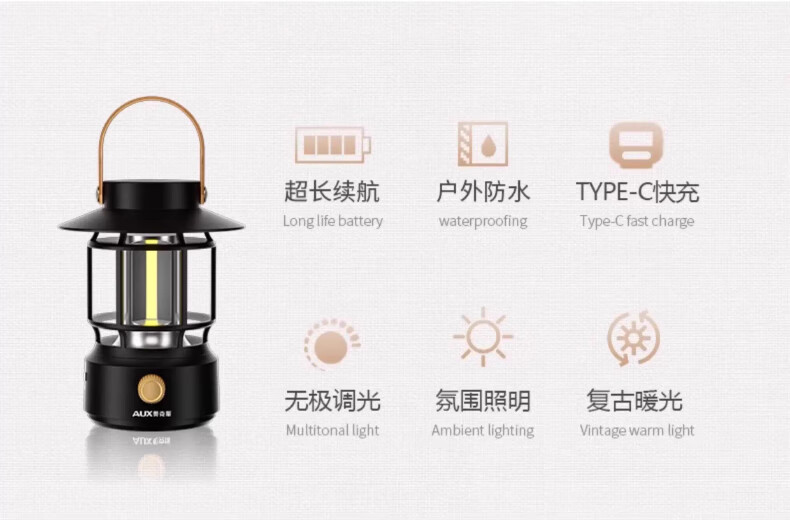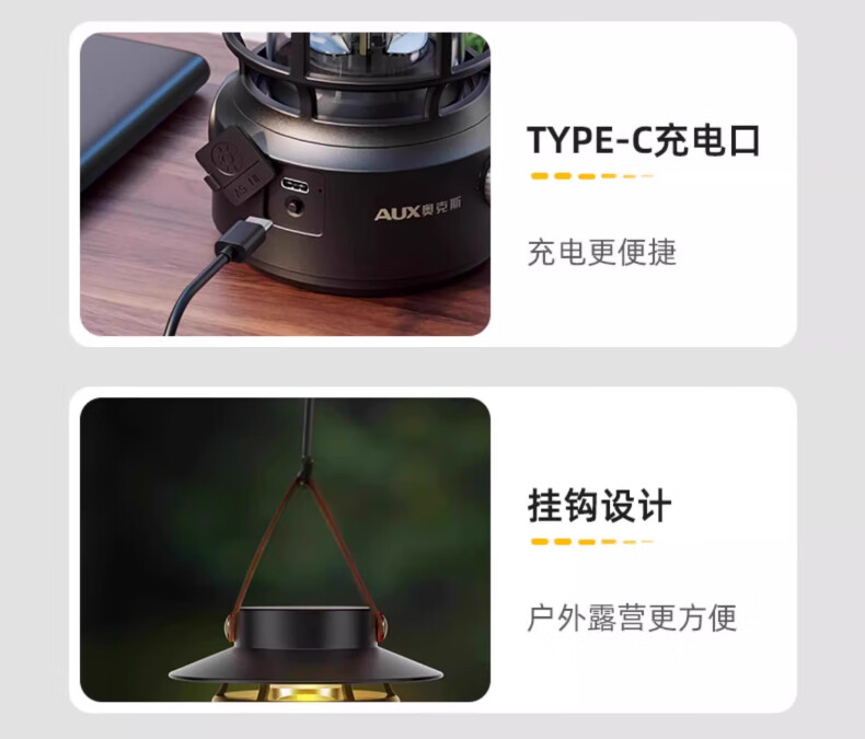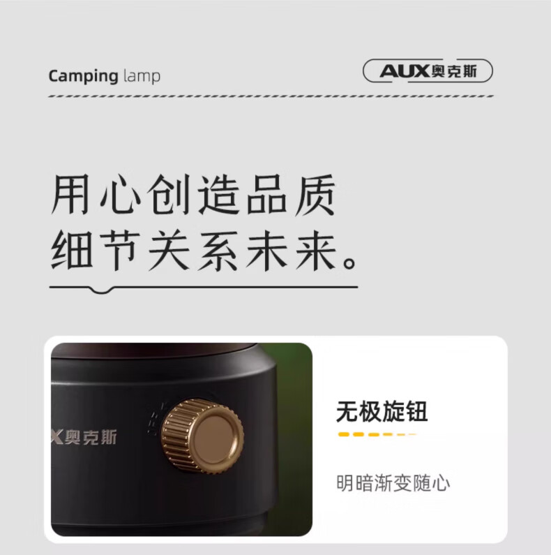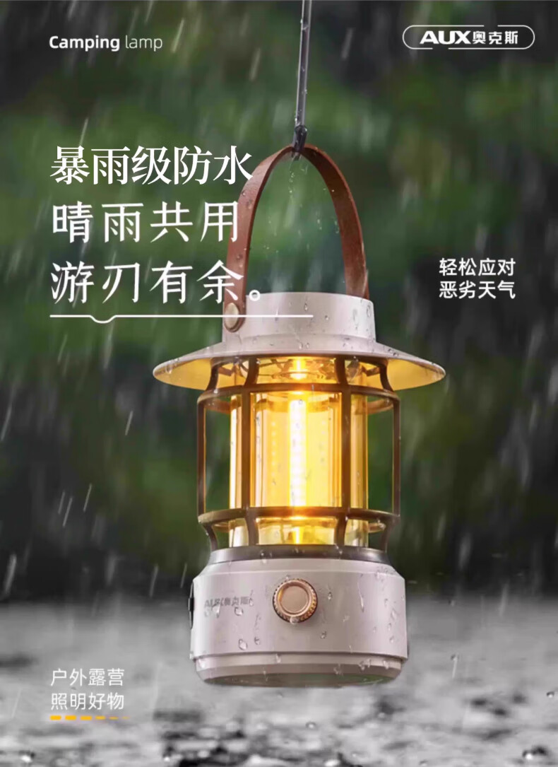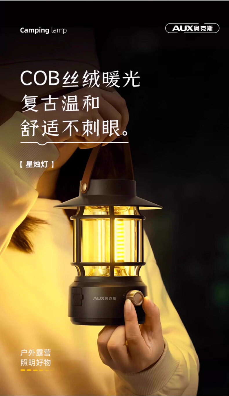 奥克斯(AUX)太阳能露营灯户外充电氛围灯野营超长续航复古超亮马灯无极调光 【月牙白】2000毫安+无极调光