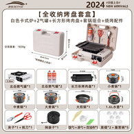 北岳卡式炉户外野外炉具炊具便携式卡磁瓦斯炉火锅燃气罐炉煤气灶套盒 白【全收纳方烤盘套装】+全套锅