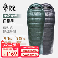 黑冰(BLACKICE)新标准【E系列鹅绒信封式羽绒睡袋】户外露营成人羽绒睡袋 E400紫灰(新标准) L