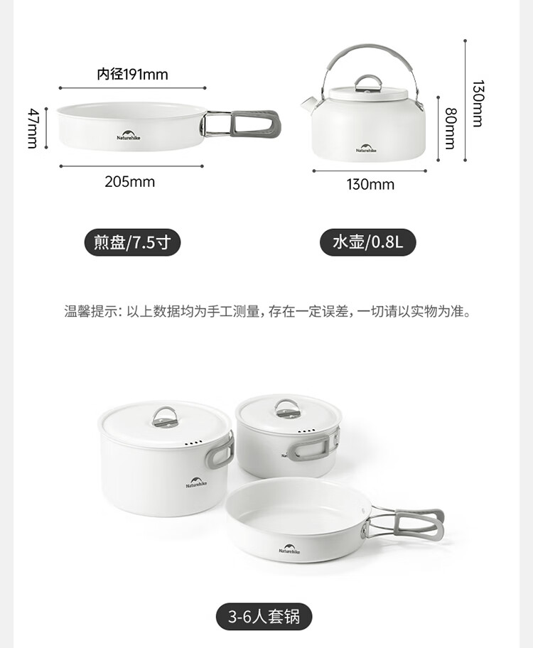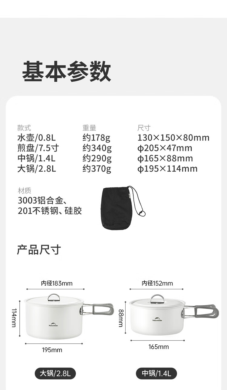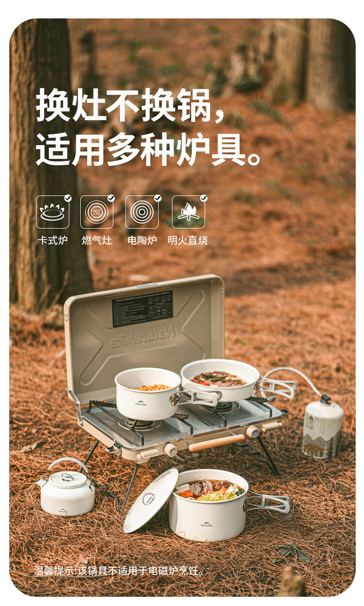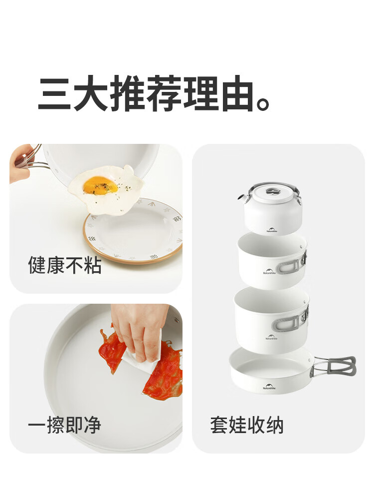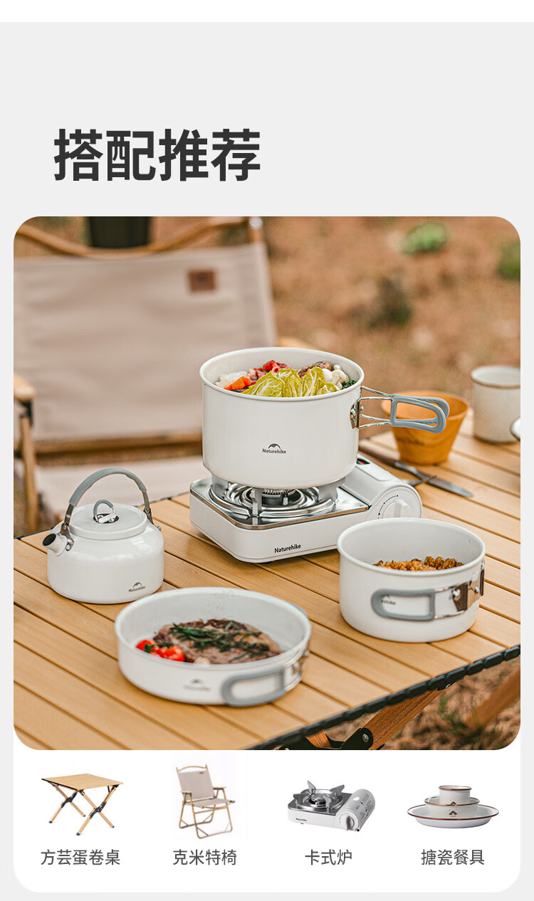 Naturehike挪客春生不沾套锅户外四合一露营便携厨具野餐煎盘炊具 水壶/0.8L