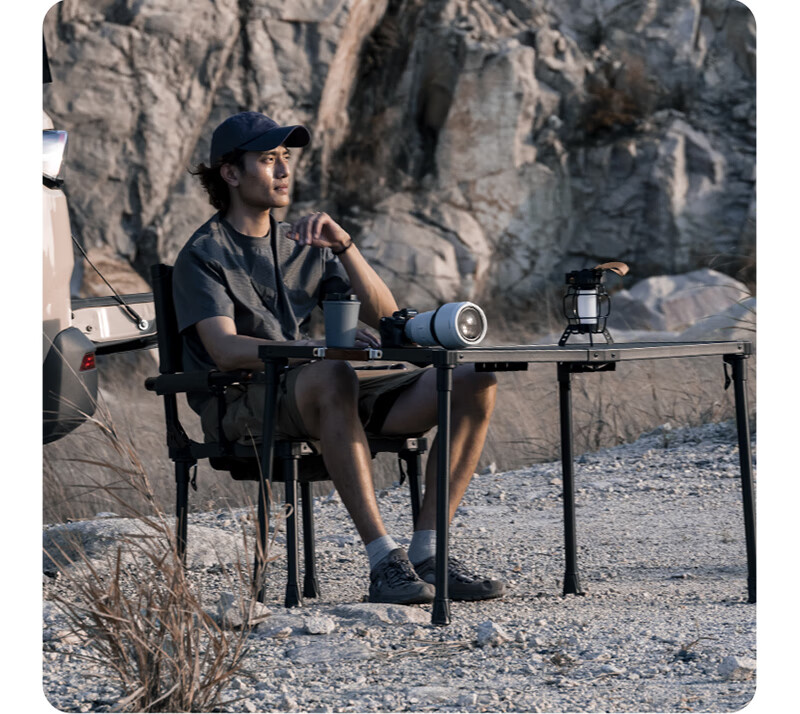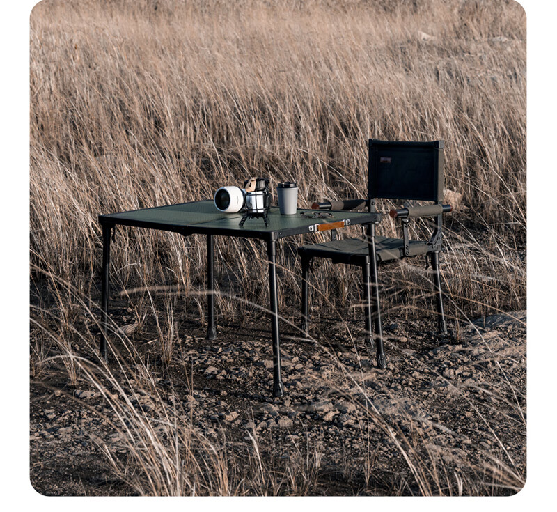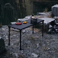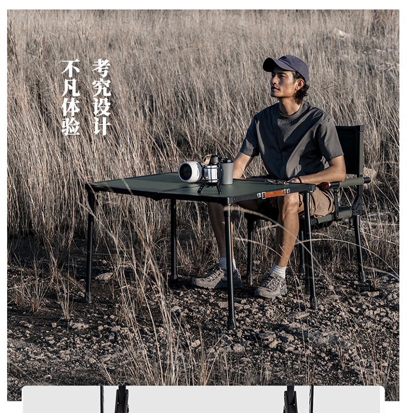 Guide Series户外铝合金折叠桌露营桌便携升降沙滩烧烤桌加宽桌自驾游车载桌 新 加宽金属 木纹黑色