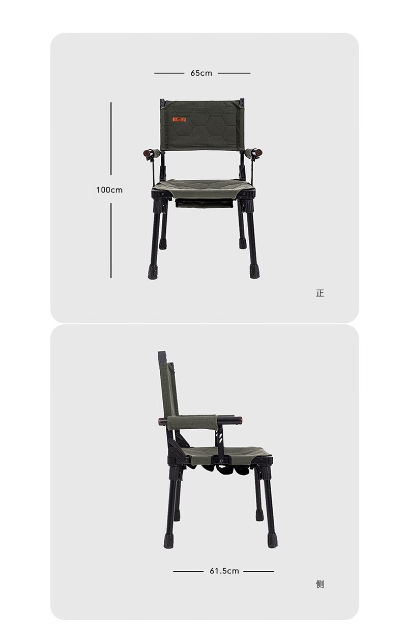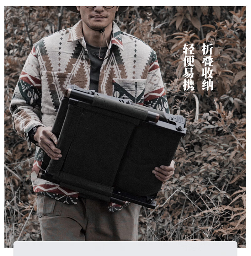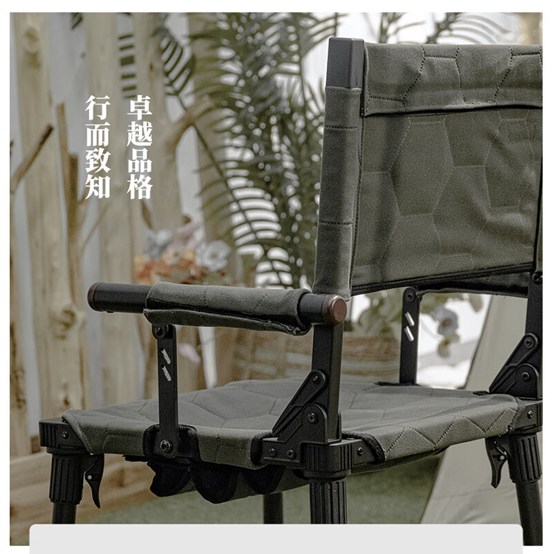 秋野地桌山户外便携折叠椅子钓鱼野餐露营餐椅复古休闲靠背扶手椅子 黑色