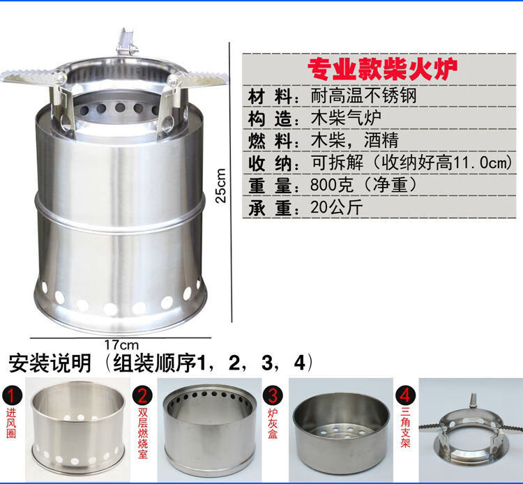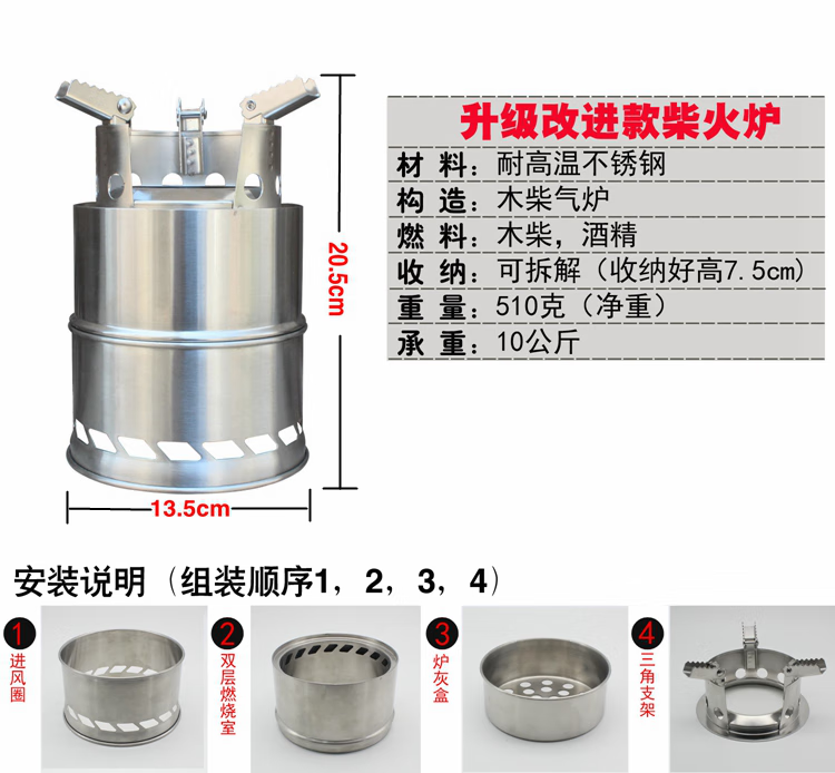 户外柴火炉便携式露营野炊多功能柴火炉农村家用小型气化炉柴火炉 登山炉+USB鼓风机