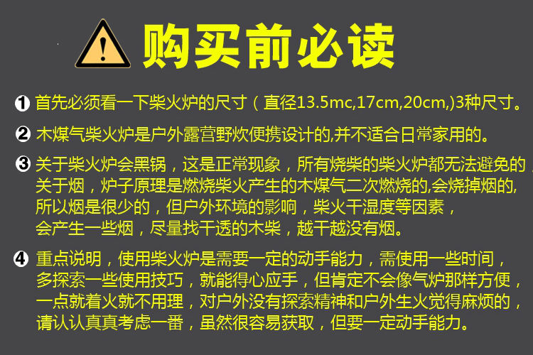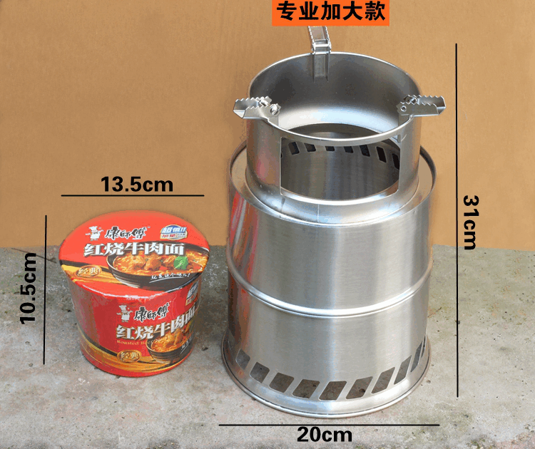 非常好用,中号的外出携带刚刚好。比小号的炉腔大一倍,做饭烧水效率更高。拇指粗15CM长的柴最合适,手锯或斧子劈砍随处可得。收纳起来随便一个什么包就可以装下。小号的大衣口袋也能装下。
