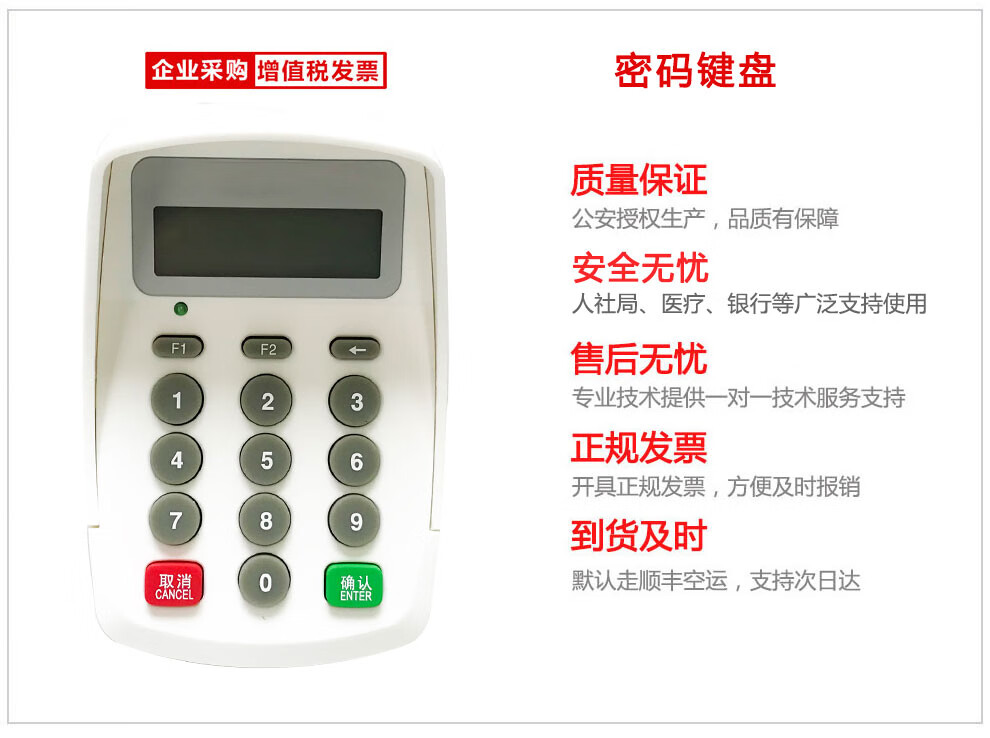 千景网口数字密码键盘医保卡读卡器窗口数字键盘社保卡读卡器密码键盘输入器支持语音播报温馨提示功能