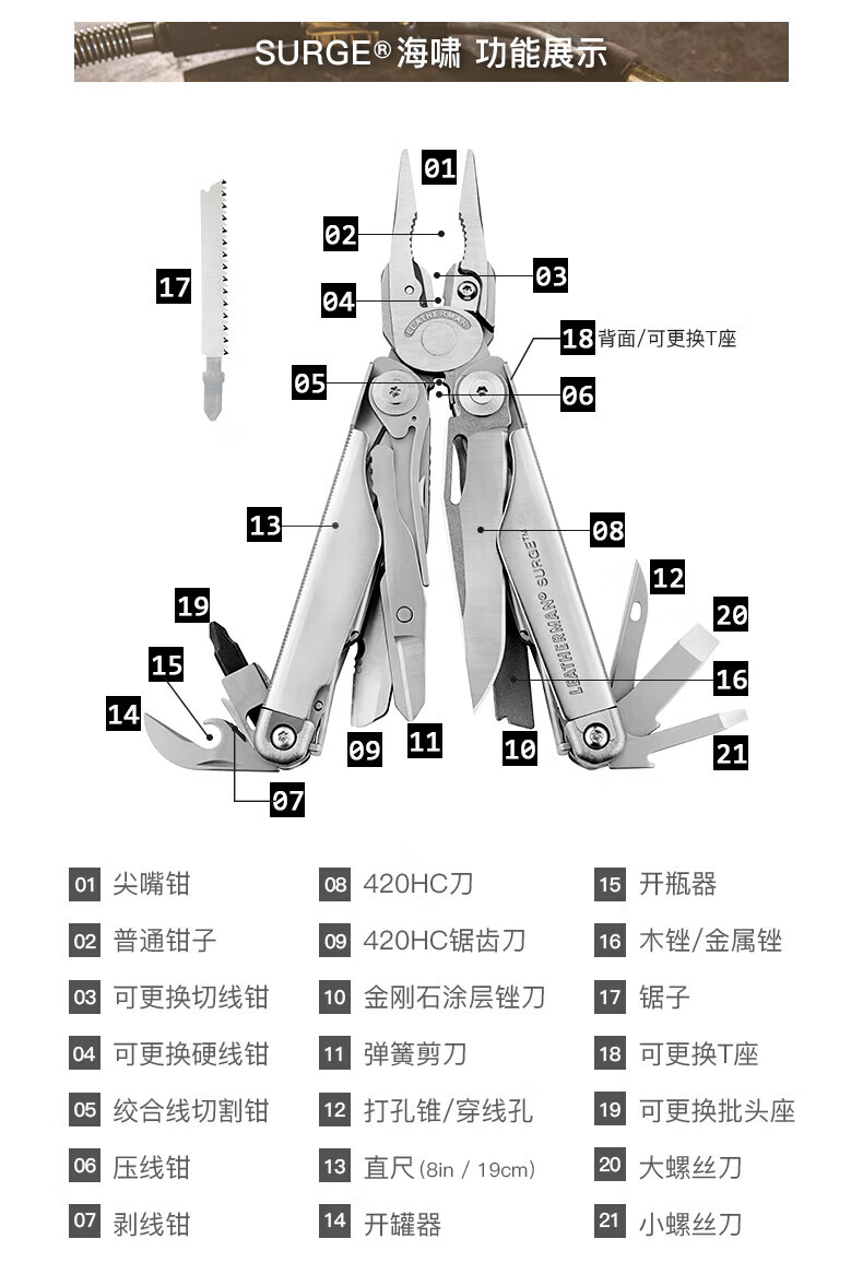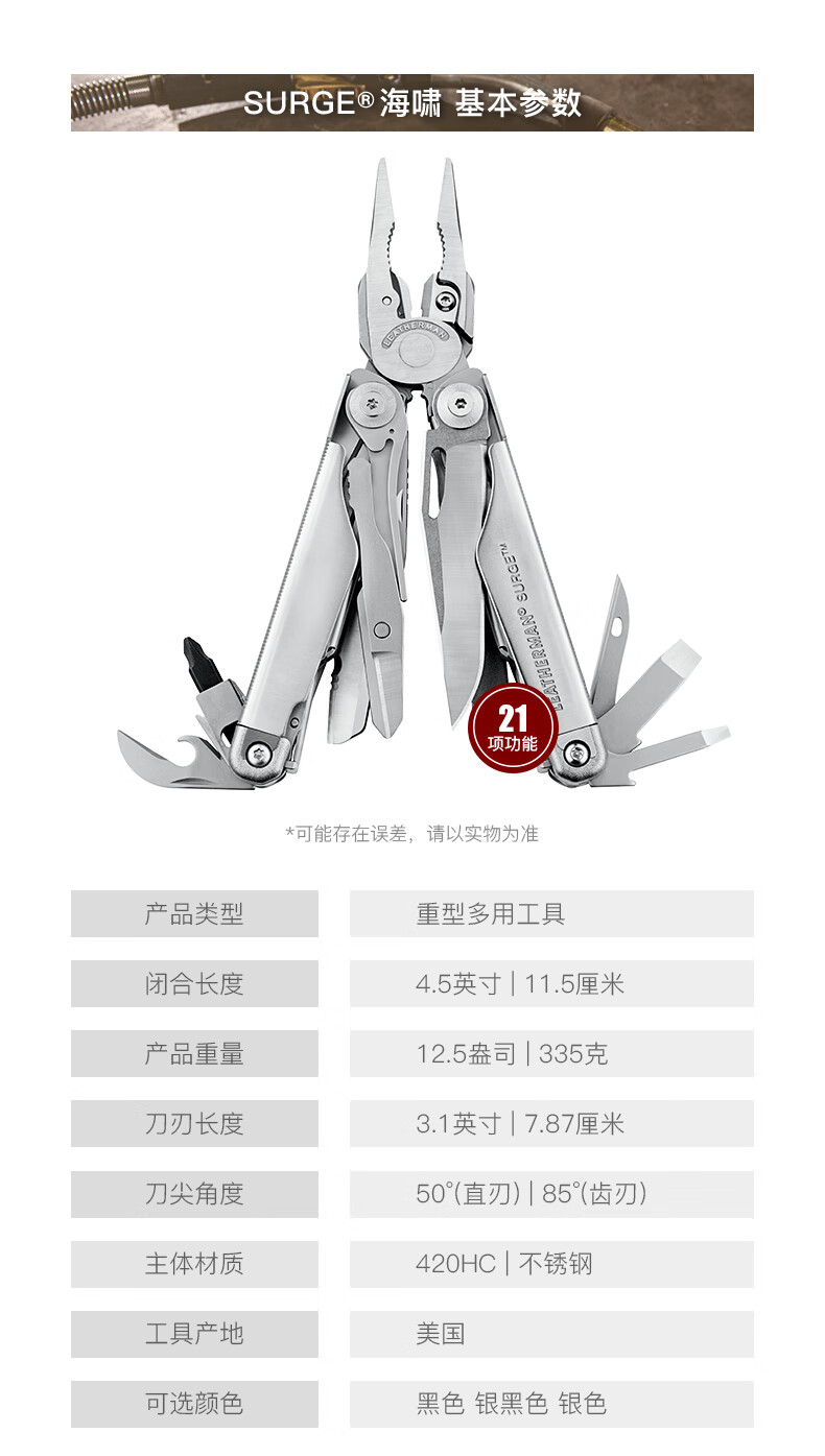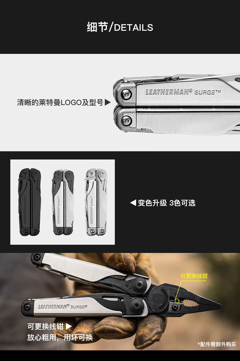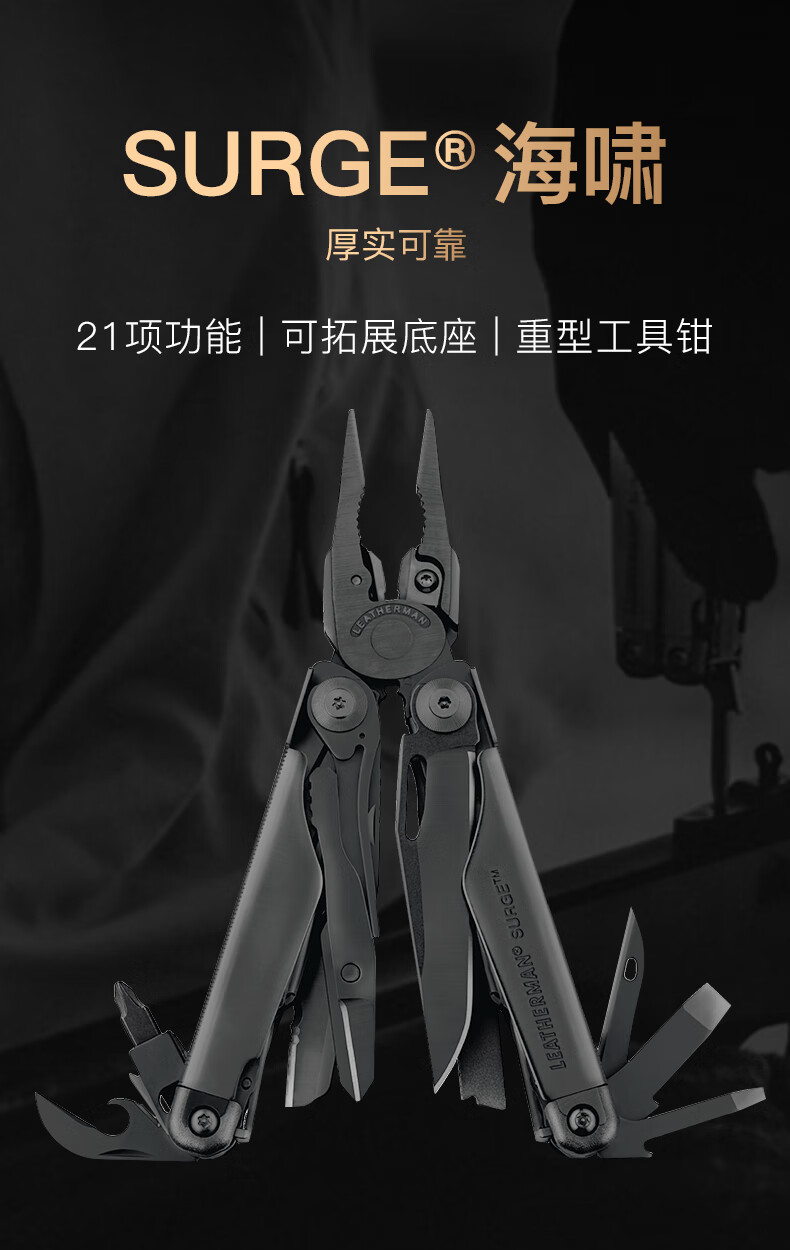 莱特曼美国进口Leatherman莱特曼surge海啸多功能EDC野营装备组合工具钳 831333 黑色