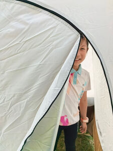 买了原始人一整套露营装置,这个露营多用帐篷很好用,打开很容易也很快,就是折叠花了一番功夫,一定要按视频操作才行
