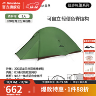 挪客Naturehike云尚pro超轻徒步登山帐篷户外露营3合1单双人野营装备 森林绿/2人/20D尼龙