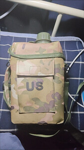 奴风 迷彩水壶US外出携带军训户外登山便携野外生存水杯 2L方水壶【卡其色US印字壶套】