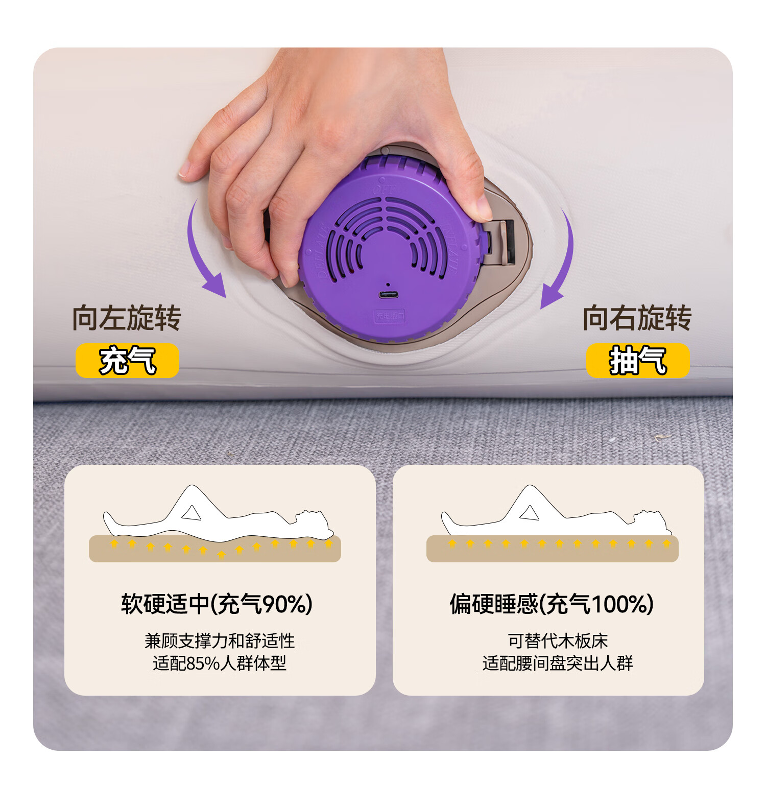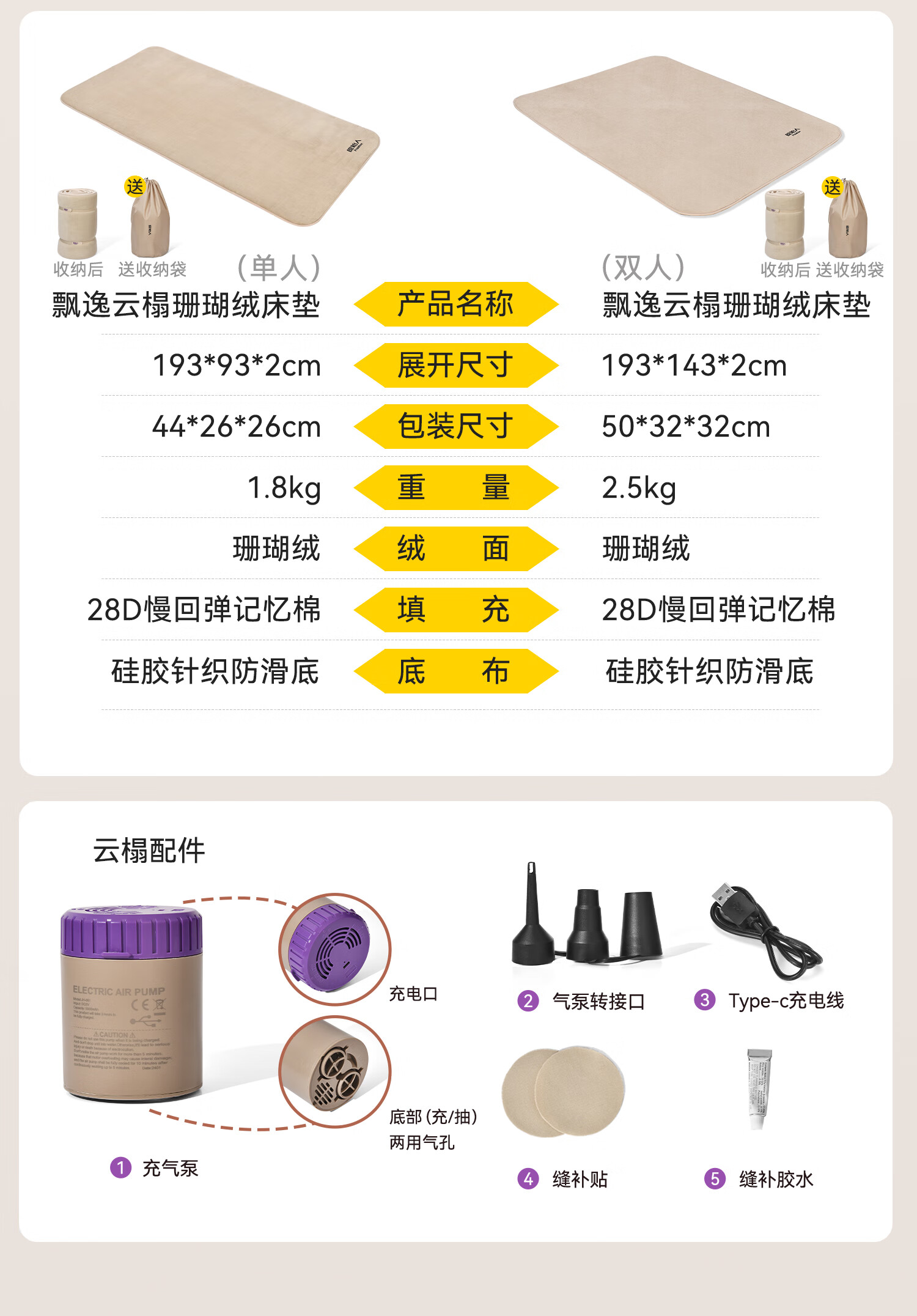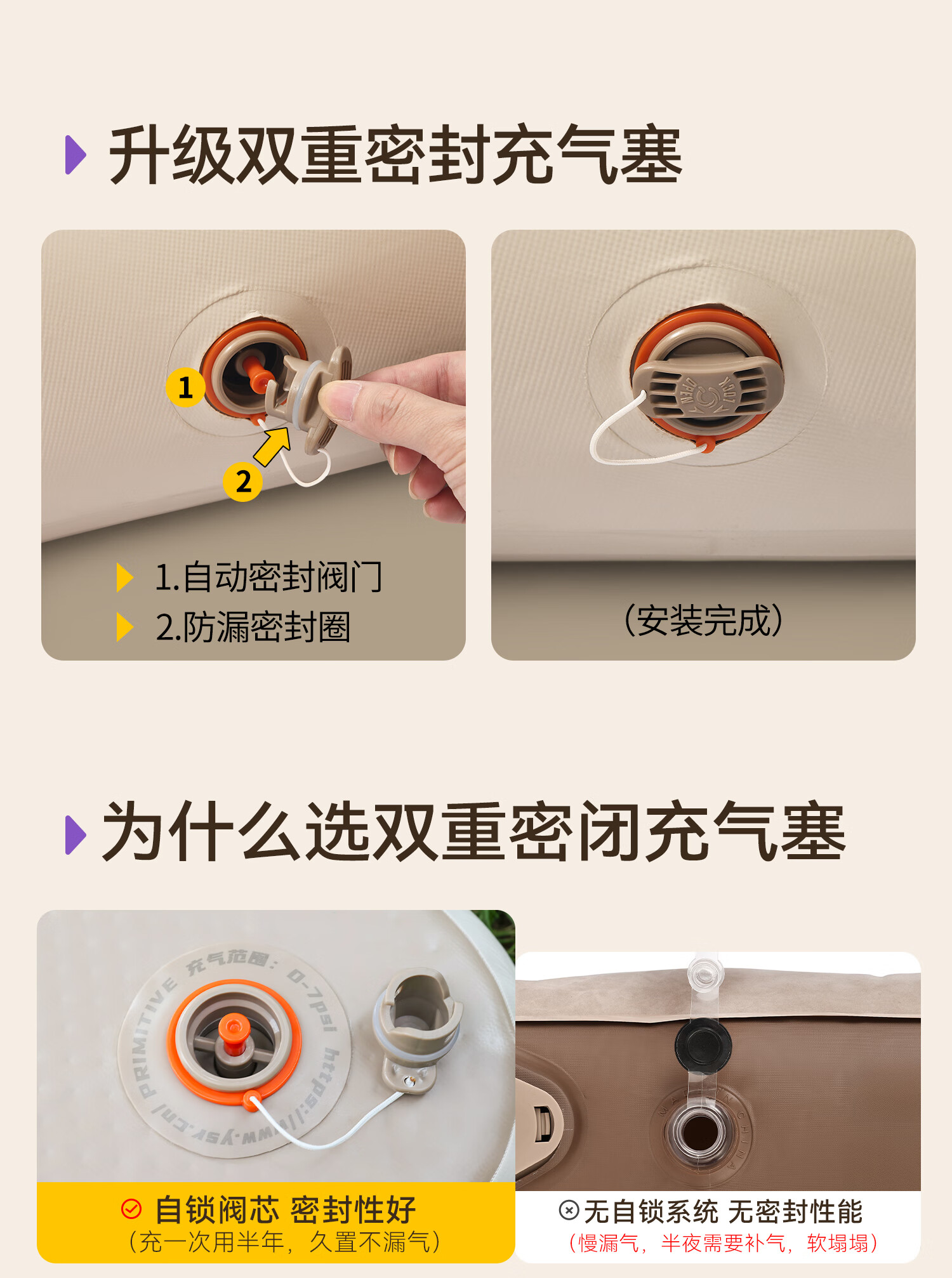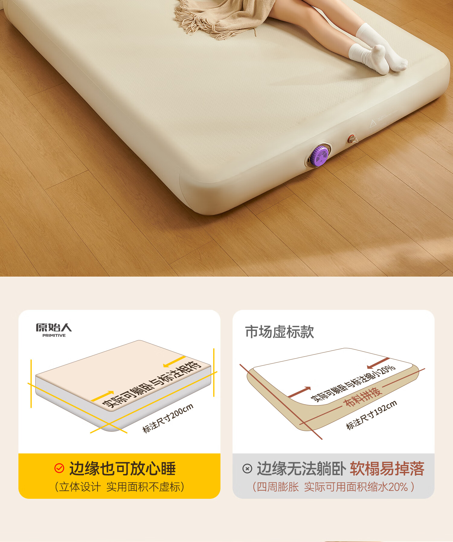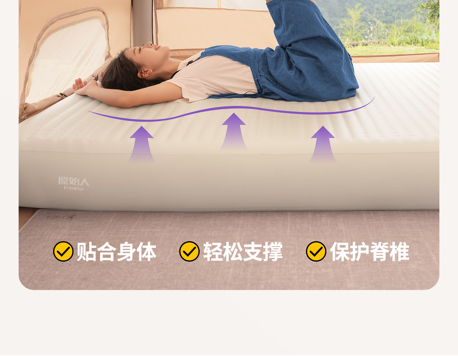 原始人(The Primitive)自动充气床垫家用户外露营拉丝全自动气垫床打地铺野营帐篷睡垫 150CM宽【电动充气泵】赠收纳桶