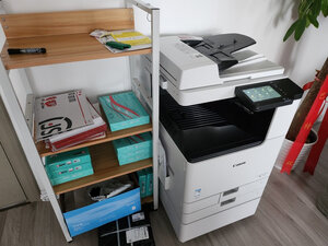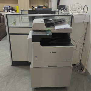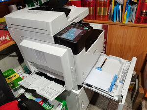 这款是IR2425.前期和店家沟通了许久才确定下来的,可以双面打印/扫描,同时支持有线网络和无线WiFi,面板为液晶显示屏,操作清晰简单一目了然。打印机、工作台前后脚送货,打印机下单的第二天就送到公司了,工作台刚刚好今天送到,上门安装调试的师傅很有耐心,专业知识能力强。店家很有责任心和耐心,一直跟踪密切联系,响应速度很快,任何疑问都能立马回复,开始有些担心工作台会不会矮了些,后来经过师父安装完以后,效果完美呈现。调试好以后立马打印了A3和A4的文件,打印速度快,打印出来的文件和图纸都很清断,没有任何杂印,接下来要好好学习一番以便能更快上手使用其他功能。又是一次满意的购物体现,谢谢店家,谢谢京东平台。