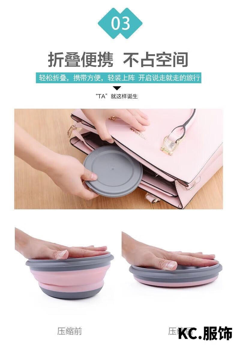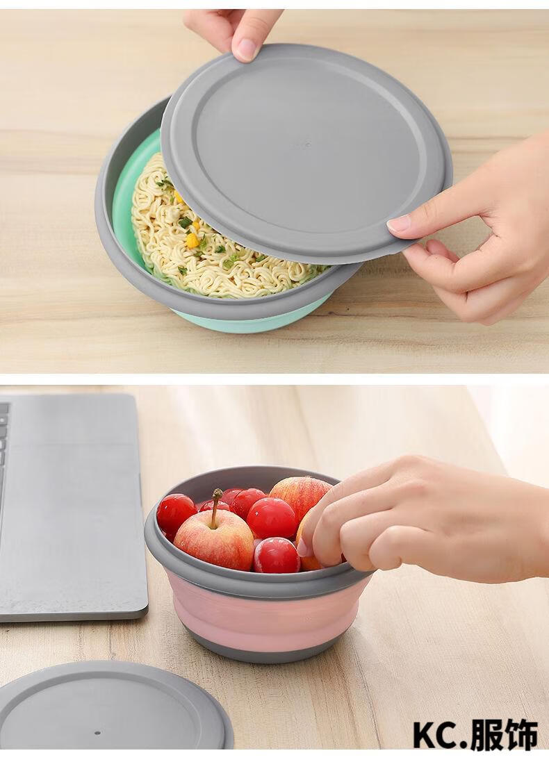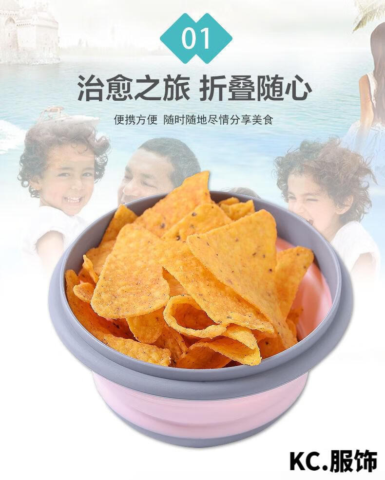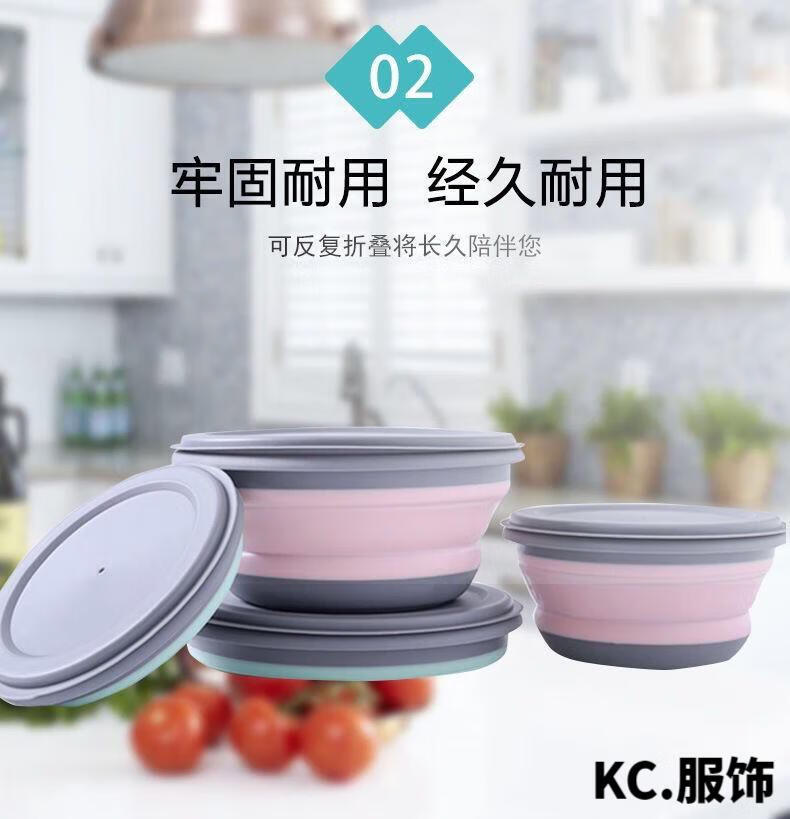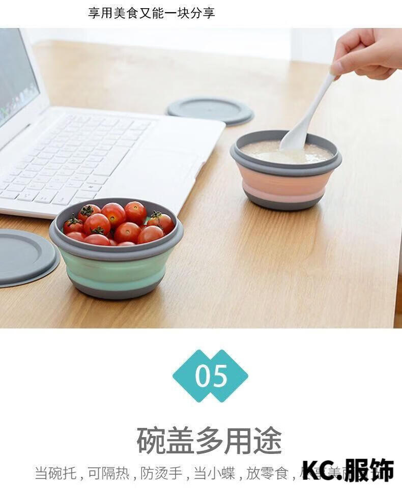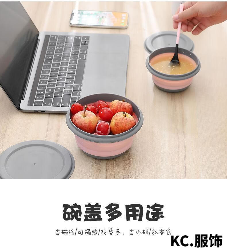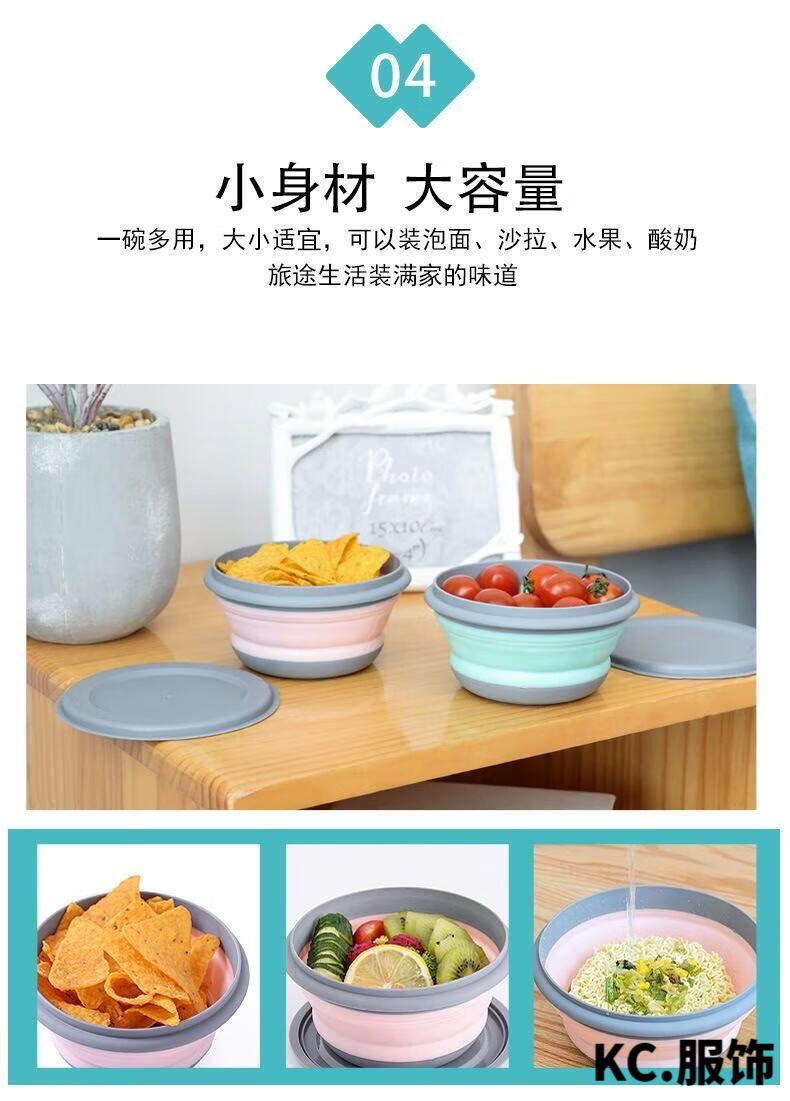 ZKHE便携折叠碗伸缩户外用餐具压缩旅行旅游野餐用具防摔饭盒 粉色小碗1个装