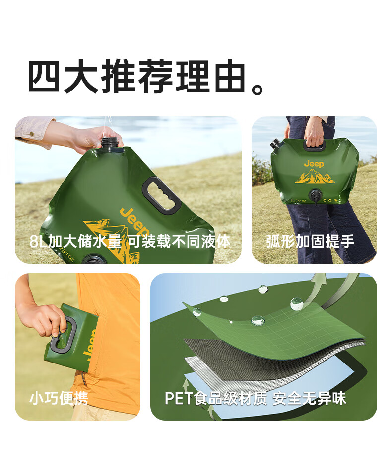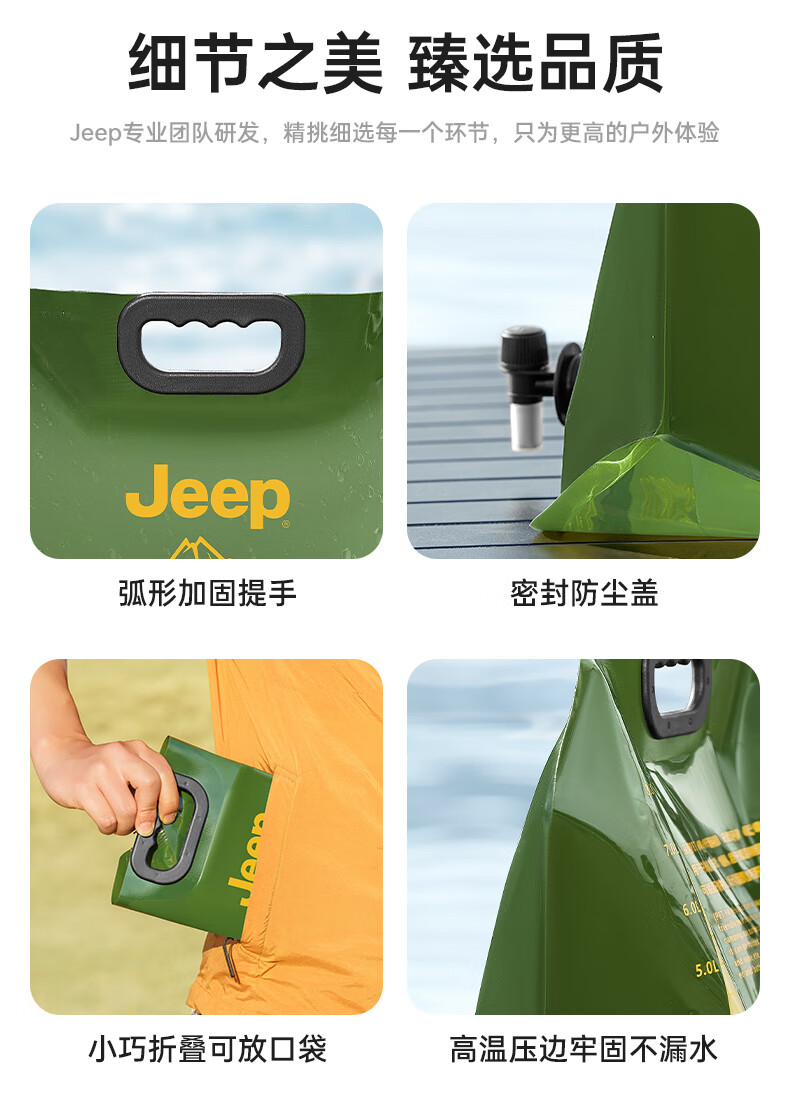 JEEP户外水袋便携带龙头折叠储水袋登山徒步露营野餐大容量蓄水袋 储水袋*2