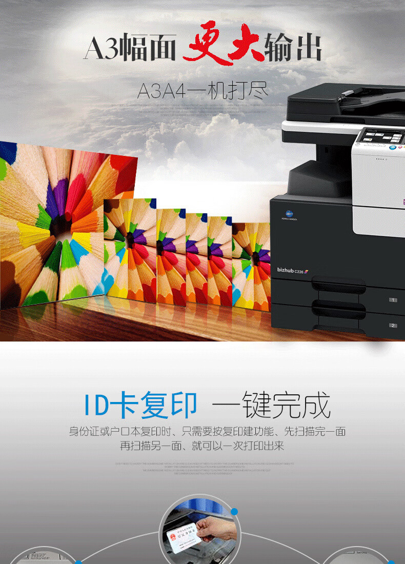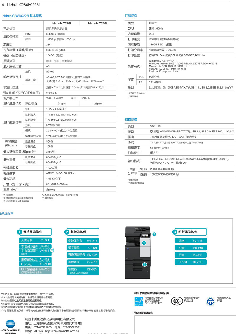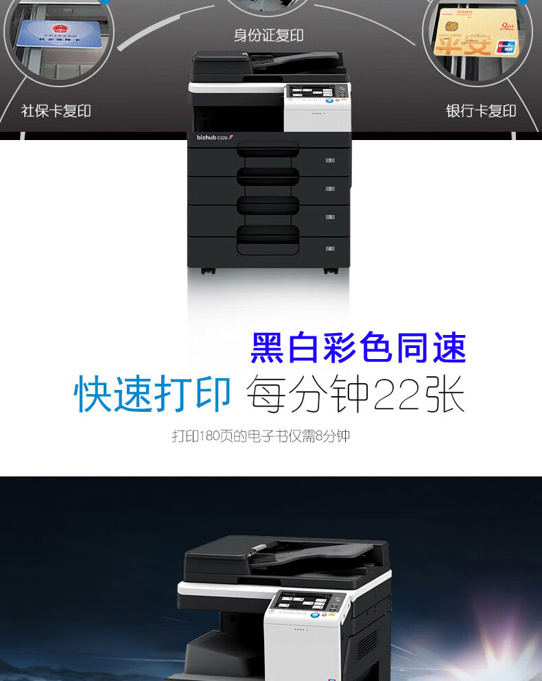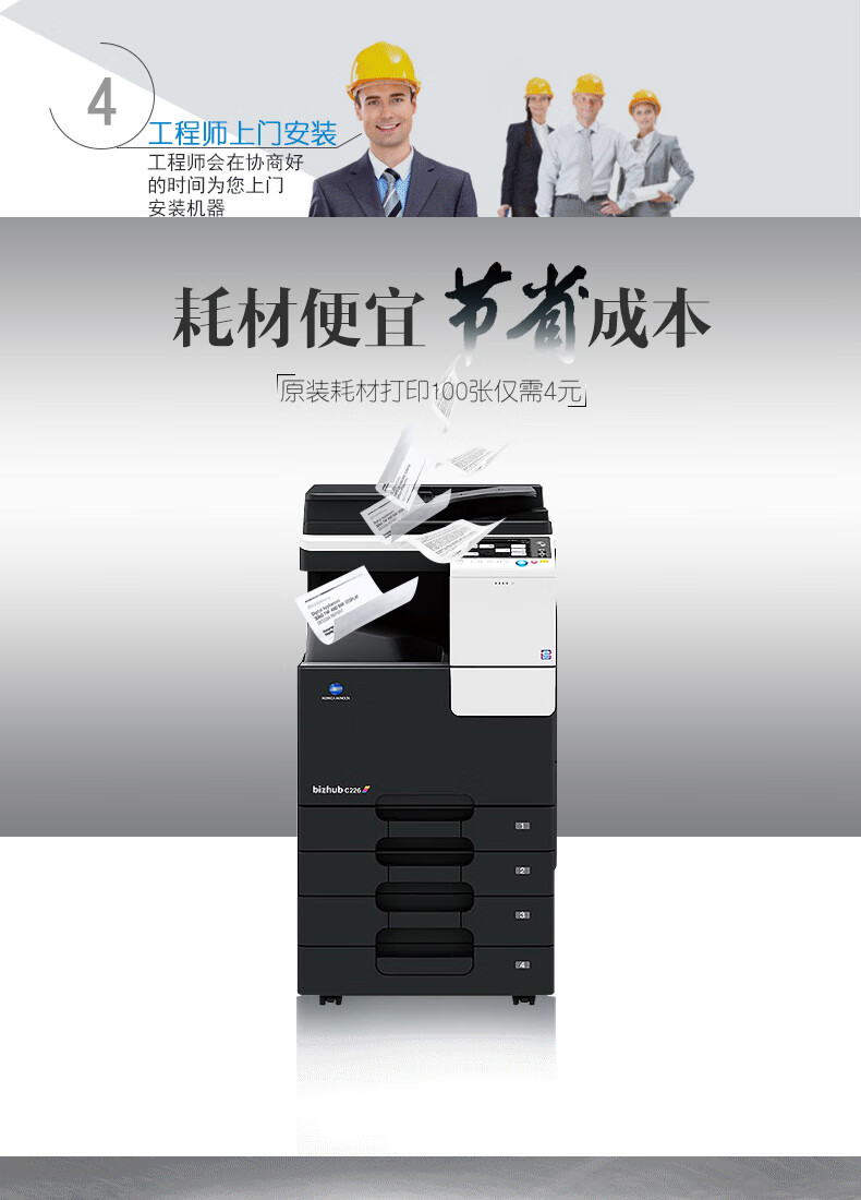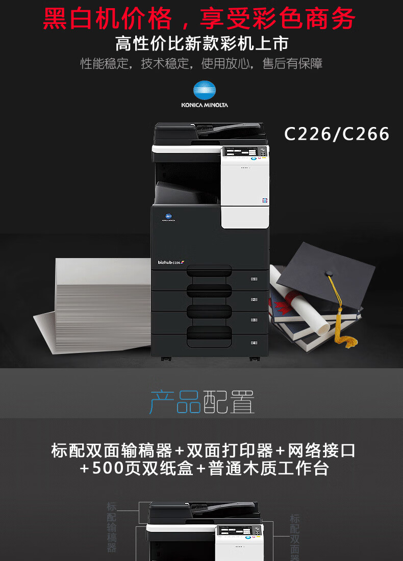柯尼卡美能达柯美C226 C266 C226i C286i C301i 彩色复印机 复印机 全新 租赁 C226/C7222含输稿器+原厂工作台 可开专票