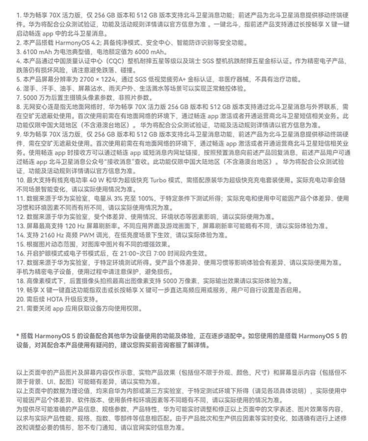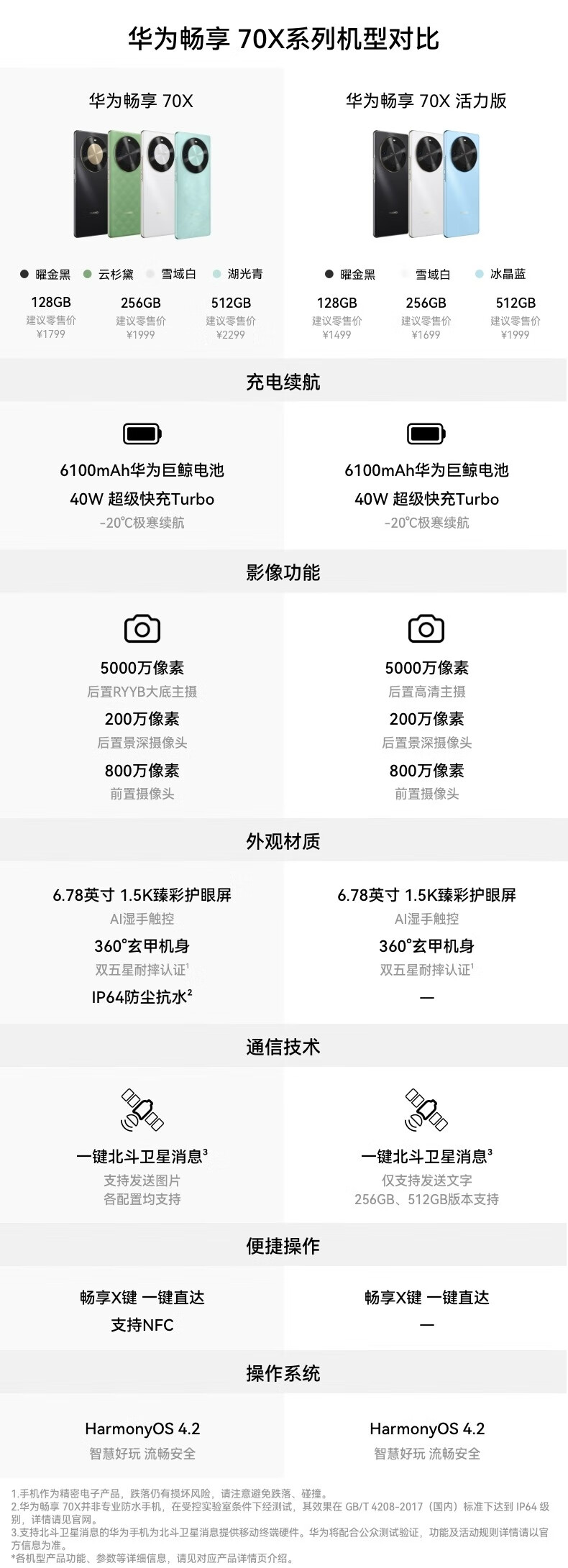 华为畅享70X 活力版 华为巨鲸超能长续航 鸿蒙安全双五星超耐摔 华为鸿蒙手机畅享70x活力版 冰晶蓝丨畅享70s 128GB