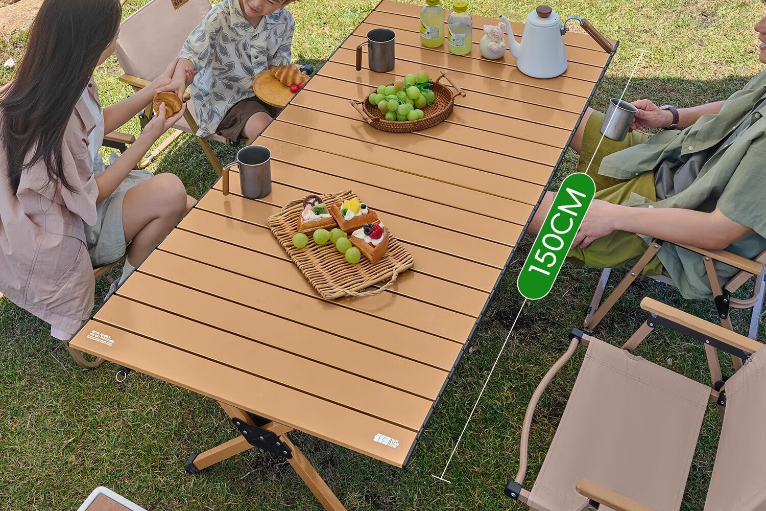 探险者露营桌椅月亮椅户外折叠桌子蛋卷桌便携式野营野餐野炊装备全套 【150桌+豪华月亮椅*6】