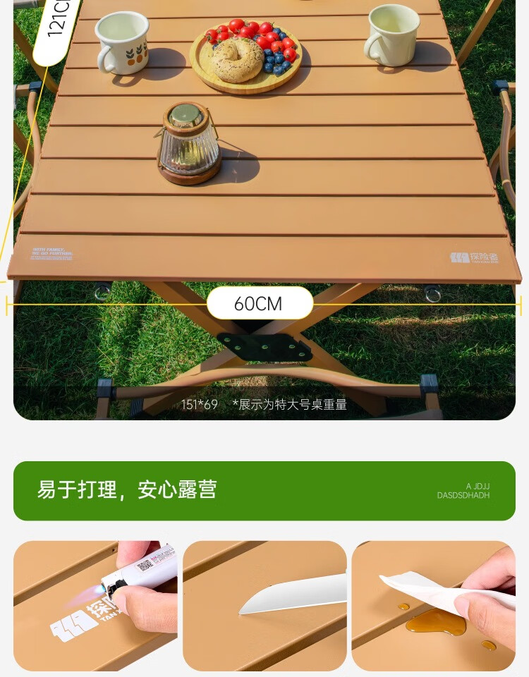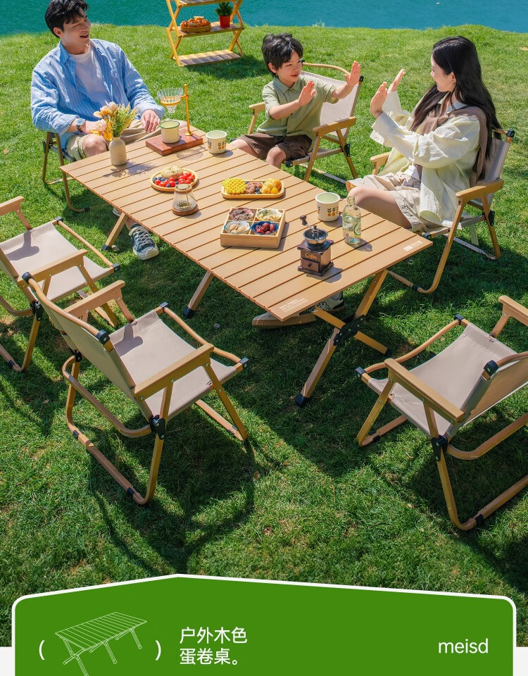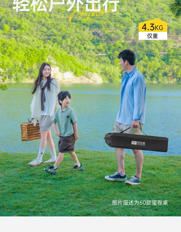 探险者户外折叠桌蛋卷桌便携式露营桌椅野餐桌子套装野炊野营装备全套 蛋卷桌(120cm)+月亮椅*4+露营推车