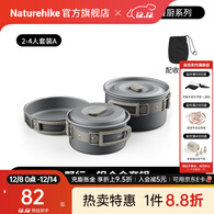 Naturehike挪客野行铝合金锅套锅 户外露营家用平底锅火锅汤锅煎炒锅不粘锅 2-4人套装1(3件套)