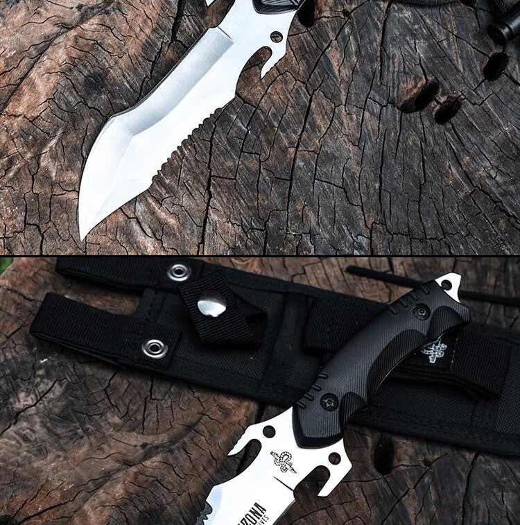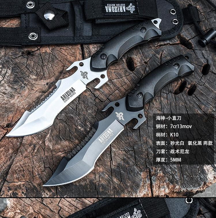 瑞士军士户外战术格斗直刀高硬度7cr钢刀野外防身便携生存小刀具 7cr战术直刀【海神黑色】 23cm-大于60°【赠战术刀套】
