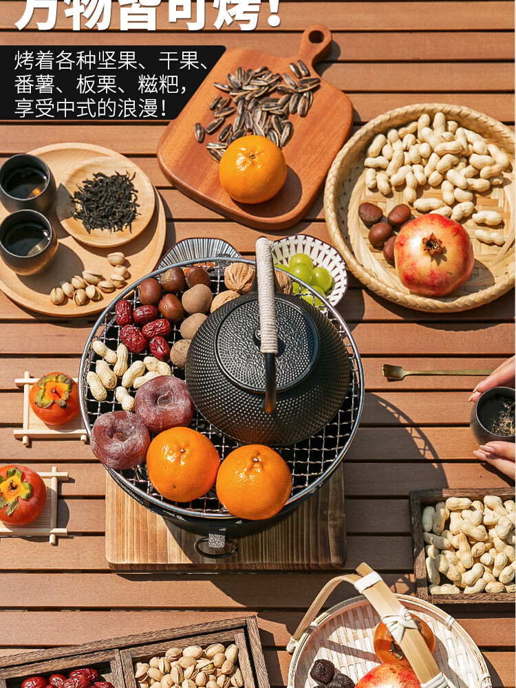 侠客森林【XIA KE SEN LIN】围炉煮茶烤火炉户外室内烤火盆碳烤炉取暖家用 碳围炉【加密烤网+带接油槽】