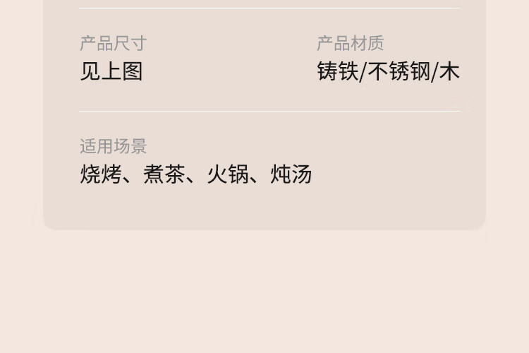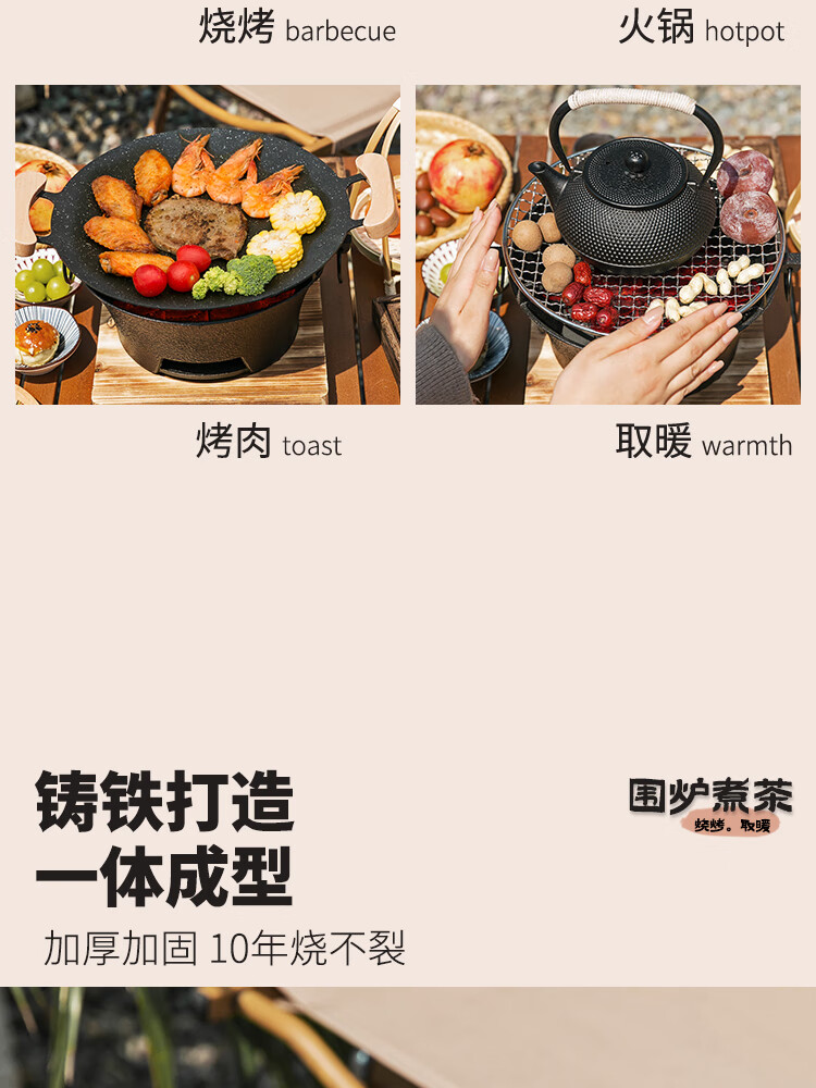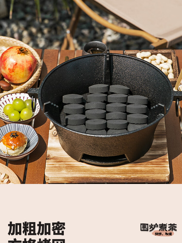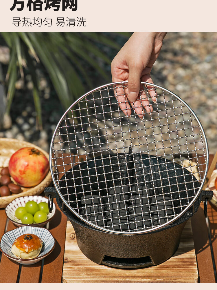 收到货后迫不及待试用了,铸铁材质很厚实,组装简单方便。户外野餐时烤东西特别给力,火力均匀持久,清洗也不费劲。家用或者带出去都很实用,性价比超高!